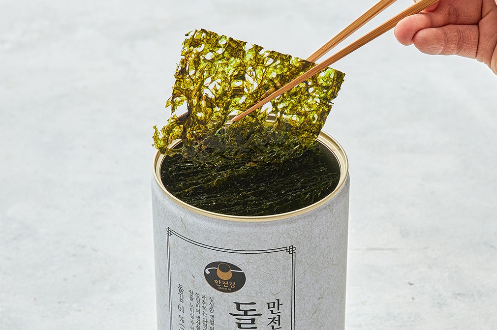 똑같은 김이라도 캔에 담겨 있으면 느낌이 남다르죠. 선물세트의 단골로도 사랑받는 캔김을 컬리는 만전김 제품으로 선보입니다. 김의 명가답게 만전김은 엄선한 원초만을 사용, 모양을 잘 잡은 후 적절하게만 간을 더했어요. 그 후 김을 밥과 함께 먹기 좋은 크기로 미리 잘라 캔에 담았으니 맛과 품질이 그대로 유지되지요. 식사를 할 때마다 뚜껑을 열어 갓 구운 듯 신선하게 즐겨보세요. 오래 두고 먹기 좋아 더 마음에 드실 거예요.