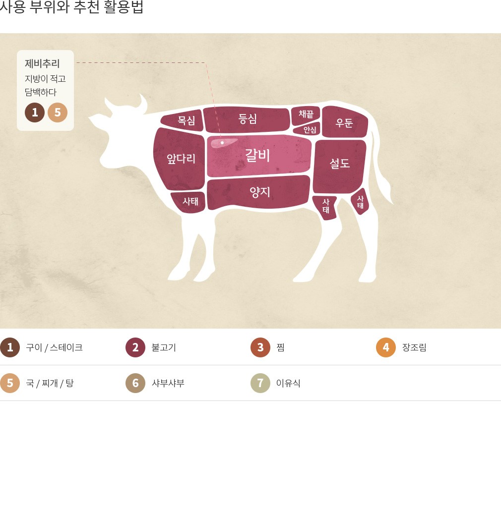 정육 상품의 특성상 3% 내외의 중량 차이가 발생할 수 있습니다. 비닐포장 등에 의해 산소가 공급되지않아 간혹 검붉게 변하는 현상이 발생할 수 있으나, 산소와 접촉하면 선홍색으로 돌아오는 점 안내드립니다.