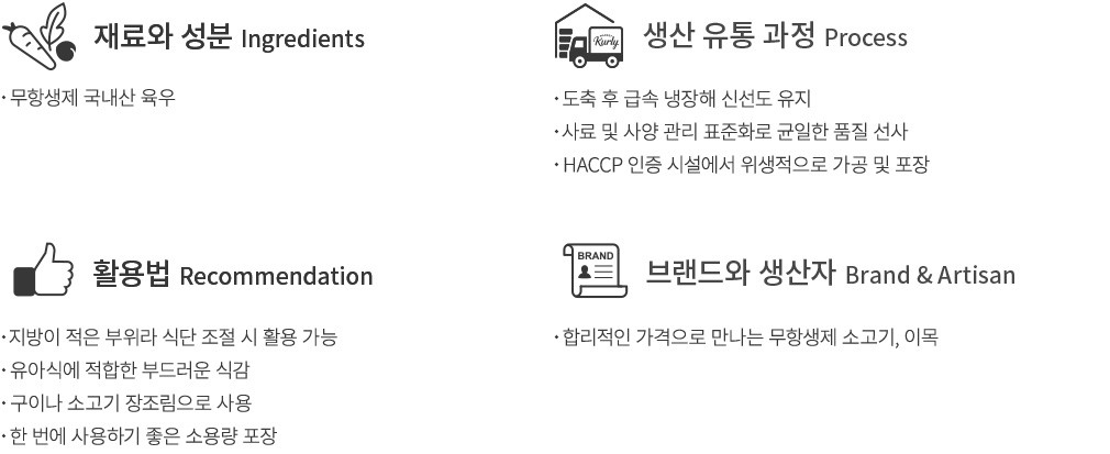 해당 상품은 냉장 제품입니다. 정육 상품의 특성상 3% 내외의 중량 차이가 발생할 수 있습니다. 상품 수령 후 최대한 빠른 시일내에 섭취를 권장드립니다. 비닐포장 등에 의해 산소가 공급되지않아 간혹 검붉게 변하는 현상이 발생할 수 있으나, 산소와 접촉하면 선홍색으로 돌아오는 점 안내드립니다.