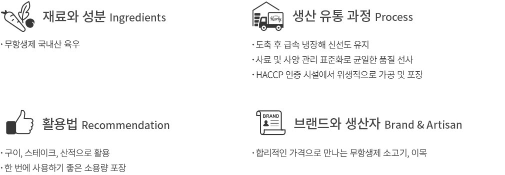 해당 상품은 냉장 제품입니다. 정육 상품의 특성상 3% 내외의 중량 차이가 발생할 수 있습니다. 상품 수령 후 최대한 빠른 시일내에 섭취를 권장드립니다. / 비닐포장 등에 의해 산소가 공급되지않아 간혹 검붉게 변하는 현상이 발생할 수 있으나, 산소와 접촉하면 선홍색으로 돌아오는 점 안내드립니다.