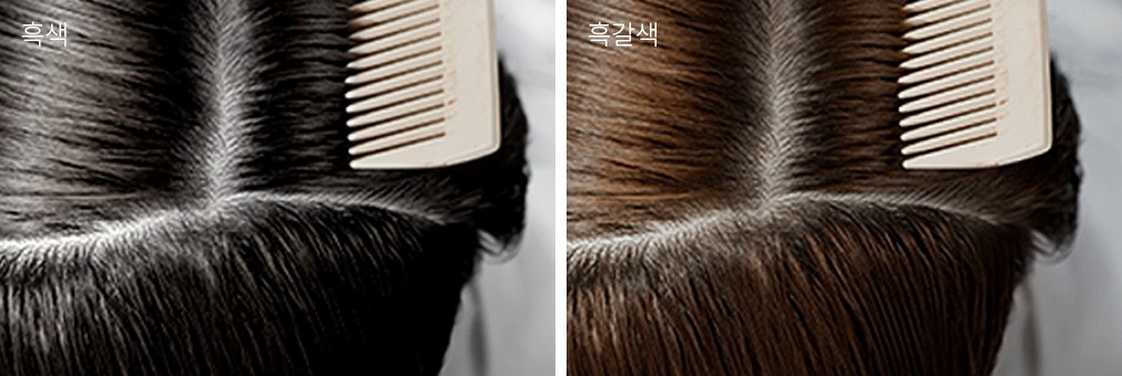 색상의 차이를 확인하세요 ・흑색 : 어둡고 짙은 흑색입니다. 흰머리가 많은 편이거나 오래도록 깔끔하게 짙은 색이 유지되는 걸 선호할 때 추천해요.