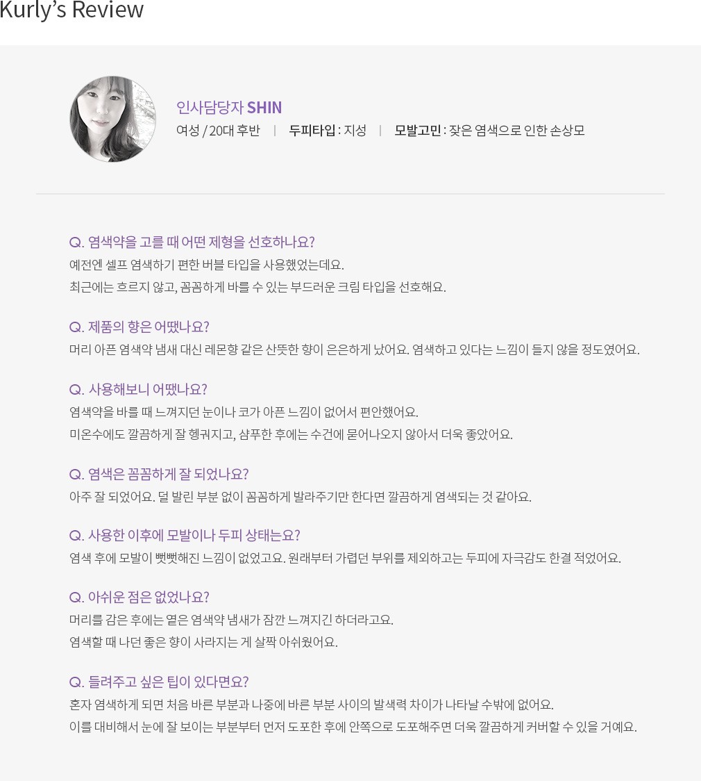 ・피부가 연약한 분, 생리 중이거나 임신 가능성이 있는 분, 두피나 목덜미에 상처가 있는 분, 패치 테스트 결과 이상 반응이 있는 분은 사용을 금합니다.