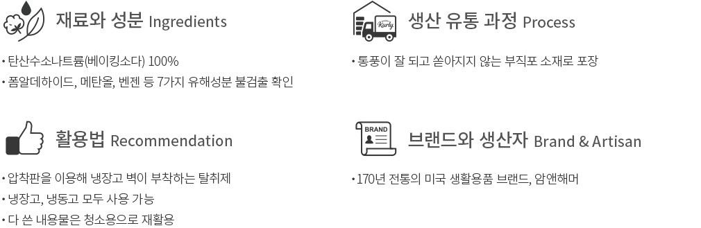 ・특징 : 압착판이 있어 냉장고 벽 등에 붙여 사용하기 간편한 탈취제입니다.