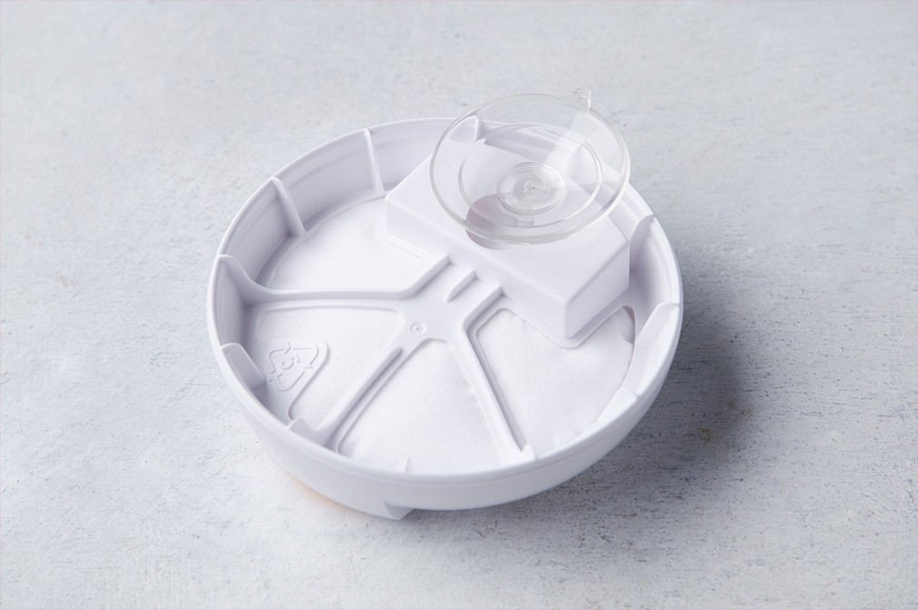 뒷면 압착판을 이용하세요 ・냉장고나 냉동고 내부의 깨끗하고 표면이 평평한 곳을 고른 뒤, 압착판을 대고 10초간 지그시 눌러주세요.