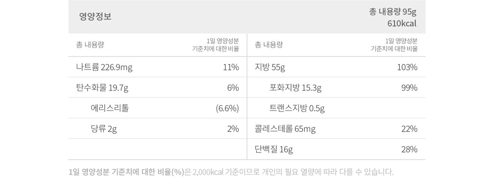 - 우유, 호두, 아황산류 함유 * 계란,대두,밀과 같은 시설에서 제조