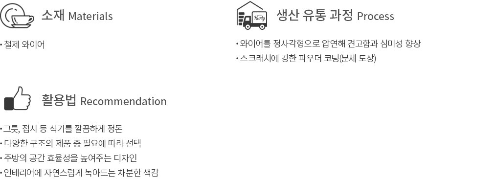・특징 : 상하부장 안에 넣어 그릇 정리용 선반으로 사용하거나, 건조대로도 활용할 수 있는 제품입니다. 폭이 좁고 길이가 긴 편이라 부엌 틈새 공간을 활용하기 좋아요.