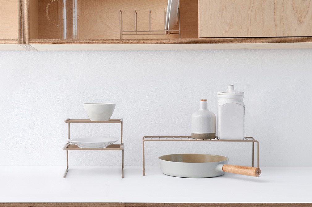 깔끔하고 효율적인 주방을 만드는 일은 주방 도구들의 제 자리를 찾아주는 것에서부터 시작합니다. 기본에 충실한 기능과 함께 인테리어에 미치는 영향까지 생각한다면 주부디자인의 정리 툴을 만나보세요. 주방의 주인공이나 다름없는 접시와 그릇을 보관할 수 있는 랙인데요. 공간에 맞게 선택할 수 있도록 다양한 구조의 랙을 준비했답니다. 따뜻하고 편안한 베이지톤 색감으로 주방 인테리어를 내추럴하게 연출해주고요. 원형이 아닌 정사각 모양의 와이어 디테일도 눈여겨볼 만하지요. 기존의 공간을 활용할 수 있도록 만들어진 점도 만족스러울 거예요.