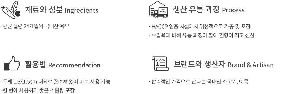 - 소고기 함유 - 알레르기 유발물질인 돼지고기, 밀, 대두를 사용한 제품과 같은 제조시설에서 제조하고 있습니다.
