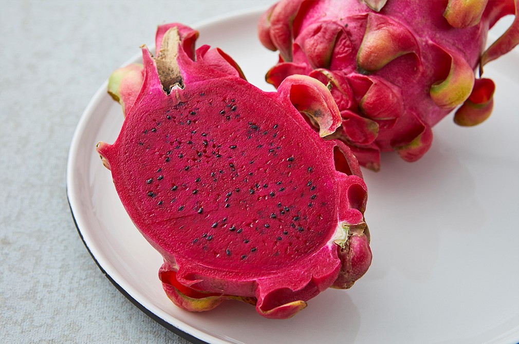속이 하얀 용과의 은근한 당도가 아쉬웠던 분들이라면, 지금 소개하는 용과가 마음에 드실 거예요. 부드러운 과육에 톡톡 씹히는 씨앗은 그대로지만 조금 더 달콤한 적용과입니다. 반으로 자르면 겉과 속이 같은 진한 자줏빛으로 시선을 확 사로잡는데요. 칼륨과 비타민이 풍부한 적색 과육은 수분감이 많아, 촉촉하고 부드러운 식감도 매력적이랍니다. 알맞게 후숙시켜 적용과의 감미로운 향미와 풍부한 과즙을 느껴 보세요. 바나나와 함께 갈아 예쁜 색감의 스무디로 즐기거나 손님 맞이용 이색 디저트로도 손색없을 거예요.