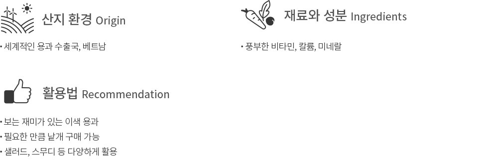 구입 전 참고사항 ・간혹 용과 밑부분이 일그러져 보일 수 있어요. 배송 중 눌린 것이 아닌, 수확 과정에서 생긴 자연스러운 현상이에요. 제품 선도 및 품질에는 이상이 없는 점 알려드립니다.