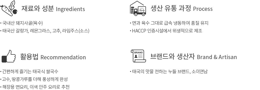 - 육수: 대두, 밀, 닭고기, 돼지고기 함유 - 똠양소스: 대두 함유 - 연유: 대두, 우유 함유 - 본 제품은 난류, 메밀, 땅콩, 고등어, 게, 새우, 오징어, 토마토, 복숭아, 쇠고기, 아황산류, 조개류(굴, 전복, 홍합 포함), 호두, 잣을 함유한 원료를 사용하여 제품을 만드는 제조시설에서 제조하였습니다.