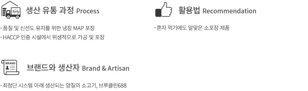 해당 상품은 냉장 상품입니다. 상품 수령 후 최대한 빠른 시일내에 섭취를 권장드립니다. 정육 상품의 특성 상 중량은 3% 내외의 차이가 발생할 수 있습니다. MAP 산소포장 특성 상 포장지에 접촉되는 부분의 일부 색변화가 있을 수 있으나, 변질이 아닌 정상범주 인 점 안내드립니다.