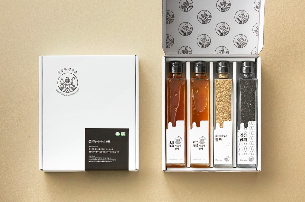 ・특징 : 전통 압착 방식으로 생산한 국내산 참기름과 들기름이 각각 한 병씩 들어있어요.