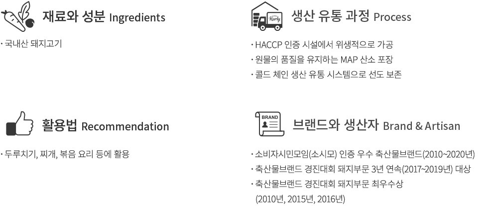 - 돼지고기 함유 - 이 제품은 알레르기 유발 성분 쇠고기를 사용한 제품과 같은 제조시설에서 제조하고 있습니다.