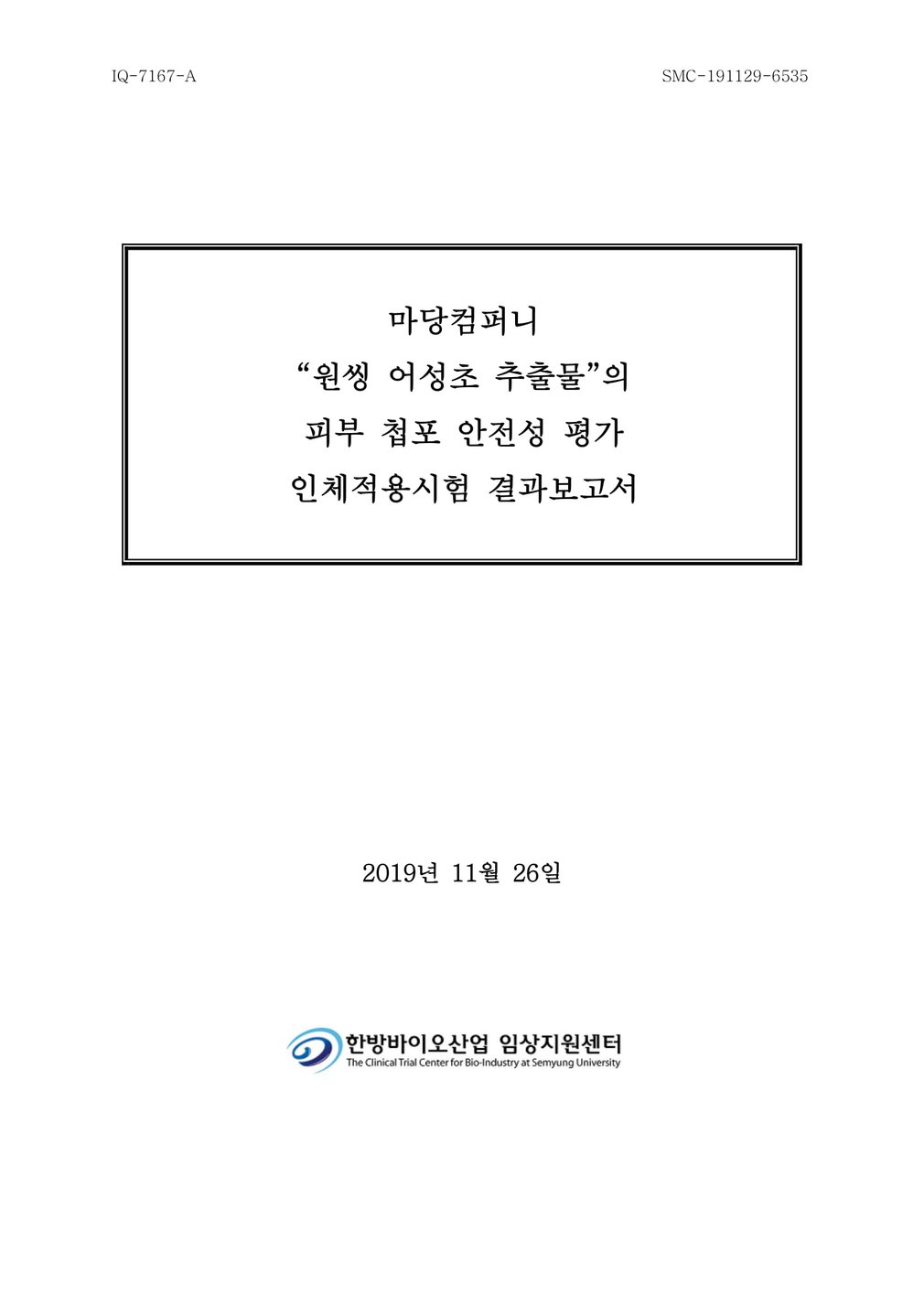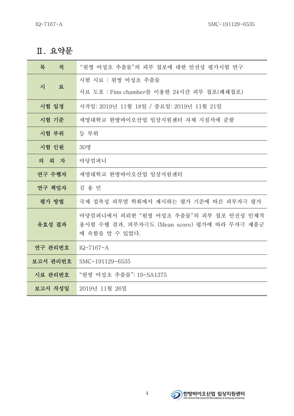 성적서를 확인하세요 ・시험 기관 : 세명대학교 한방바이오산업 임상지원센터