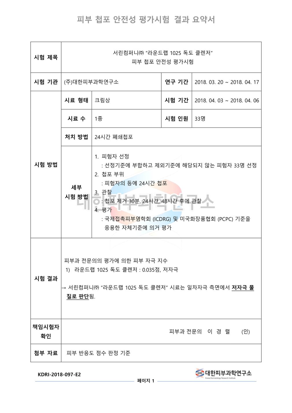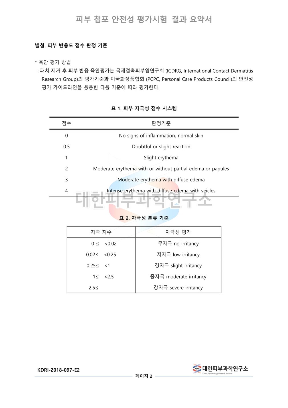 ①(주)대한피부과학연구소 : 24시간 피부 첩포 시험에서 저자극 물질로 판단
