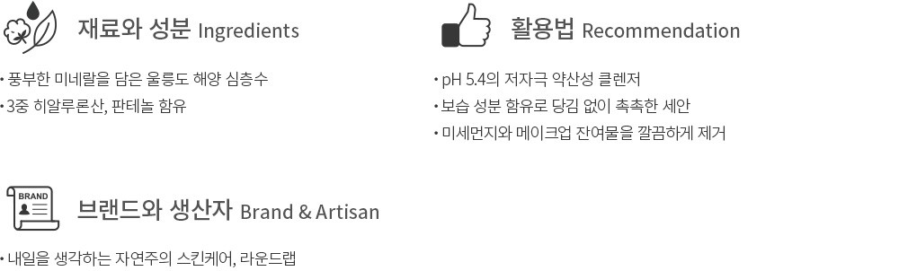 ・사용감 : 소량으로도 조밀한 거품이 풍성하게 일어나요. 세안 후에도 피부결이 뻣뻣하거나 건조한 느낌이 없이 부드럽게 마무리됩니다.