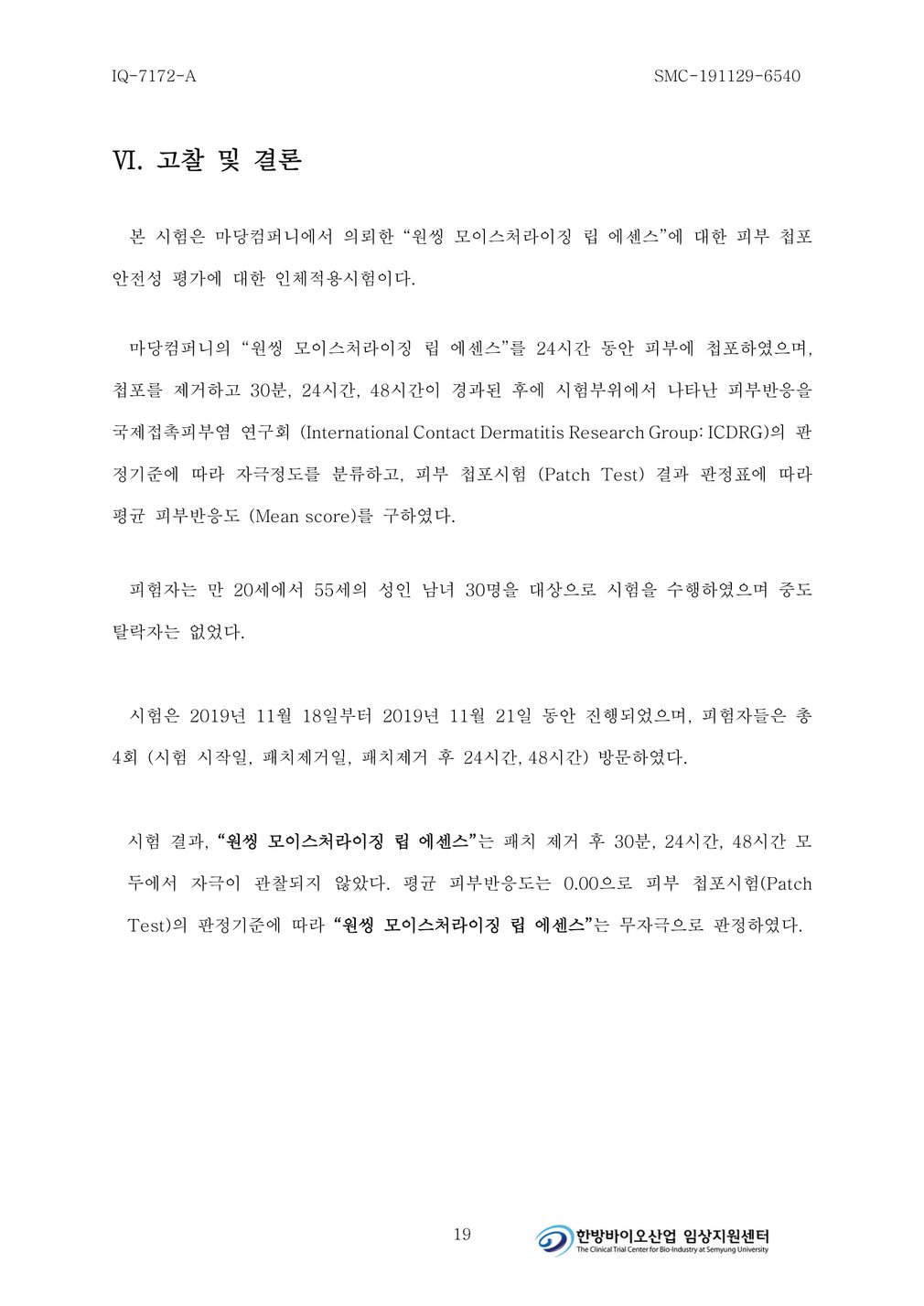 성적서를 확인하세요 ・시험 기관 : 세명대학교 한방바이오산업 임상지원센터