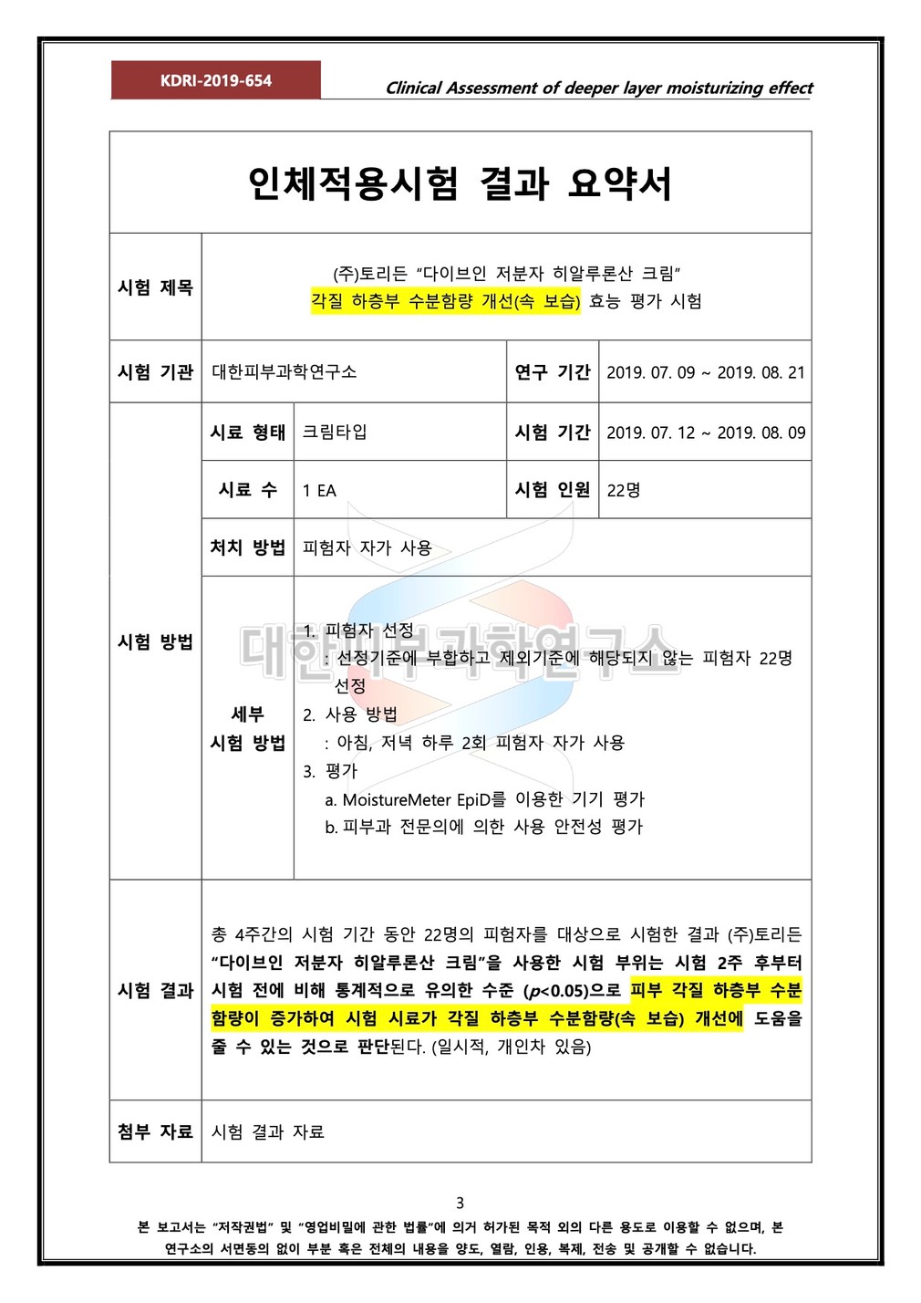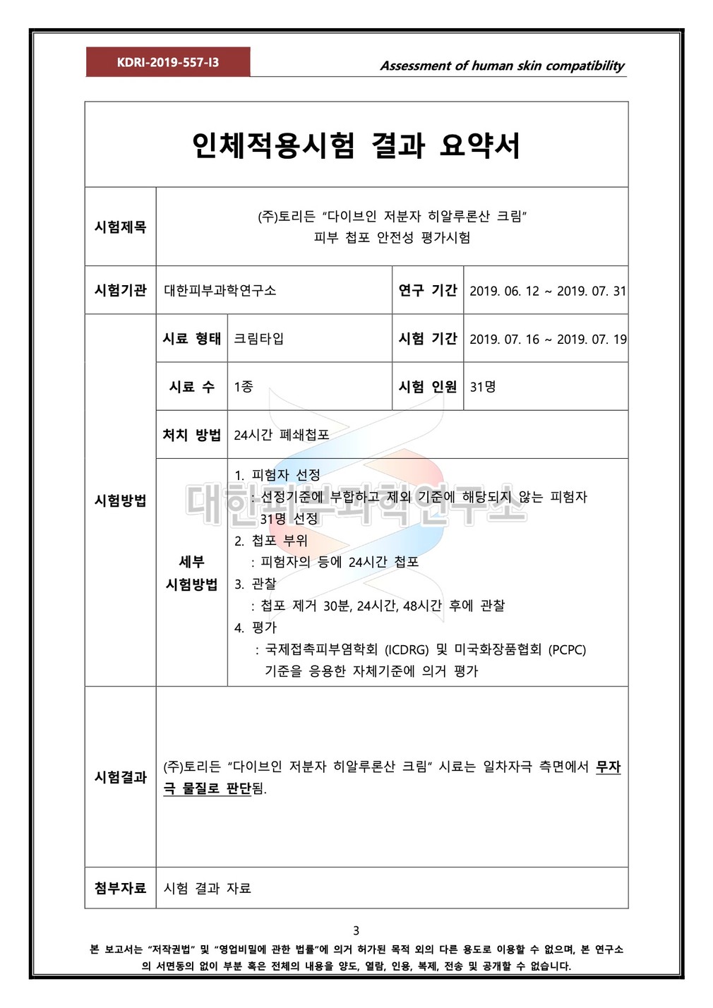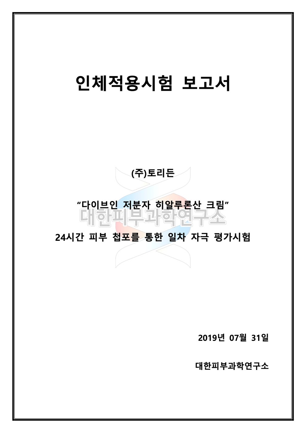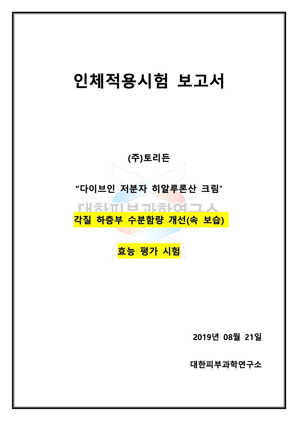 성적서를 확인하세요 ・시험 기관 : 대한피부과학연구소