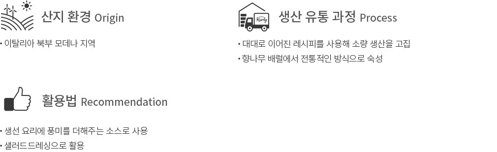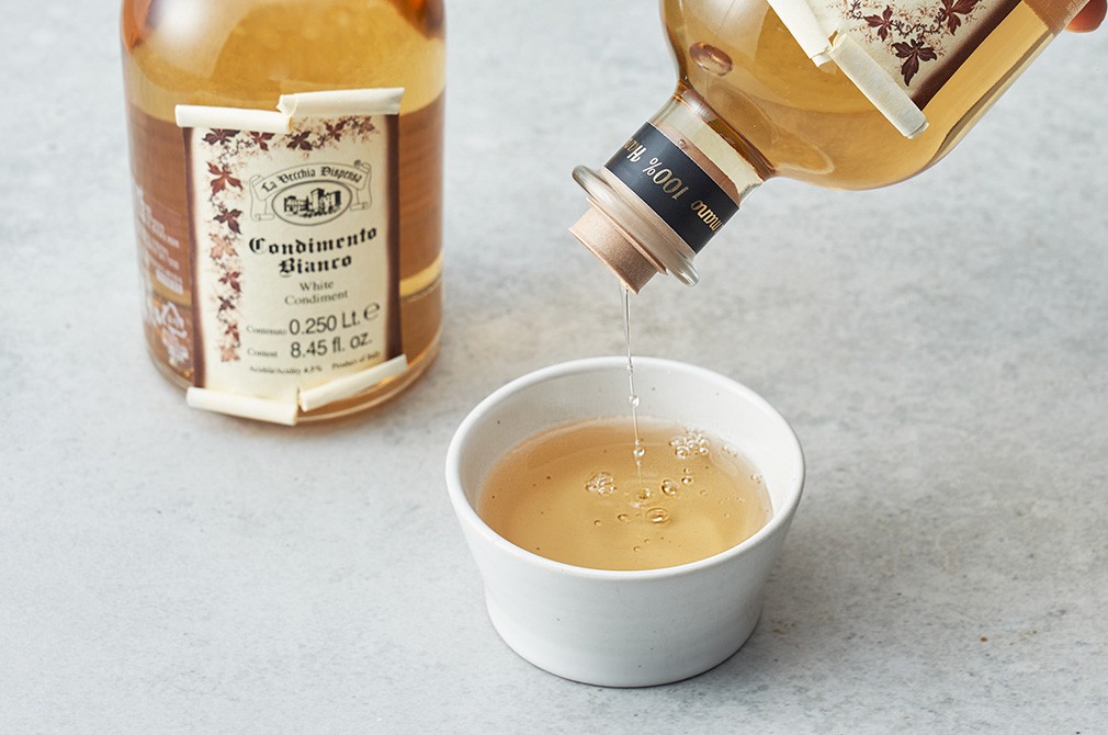 포도 함량이 높아 깔끔하고 새콤한 풍미를 자랑하는 화이트 발사믹을 소개할게요. 이탈리아에서 전통적인 수제 방식을 고집하는 라베키아가 청포도 원액과 와인식초만을 혼합하여 숙성해 만들었답니다. 트레이트마크인 접힌 라벨지마저 멋스럽죠. 생선 마리네이드용으로도 활용하거나, 그대로 샐러드드레싱으로 뿌려서 요리의 완성도를 높여 보세요. 올리브오일과 다른 향신료를 더해 나만의 드레싱을 만들어봐도 좋아요.