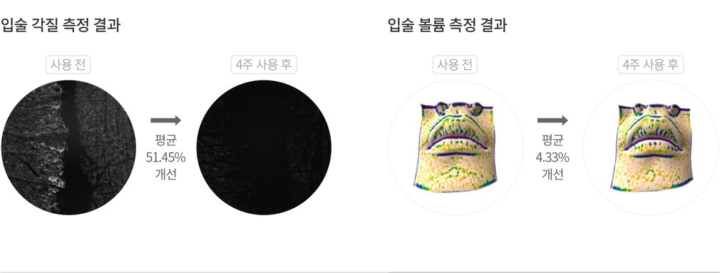 ①4주 사용으로 입술 볼륨, 보습, 각질, 윤기 개선 효과에 도움을 주는 것으로 판단
