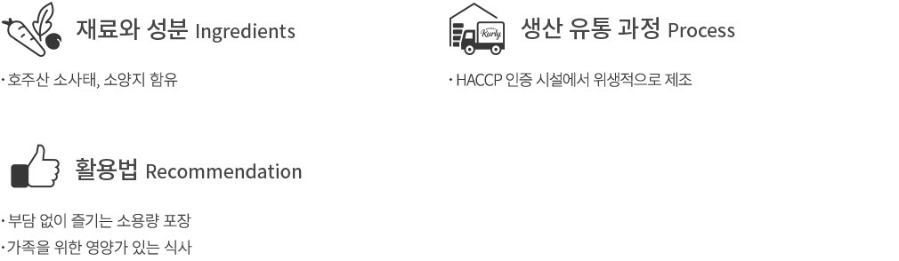 - 쇠고기 함유 - 이 제품은 돼지고기, 닭고기, 밀, 대우, 알류, 새우를 사용한 제품과 같은 시설에서 제조되고 있습니다.