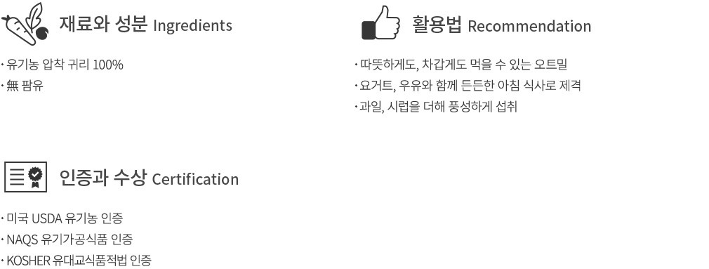유기농 귀리 100% 의 깊은 맛!