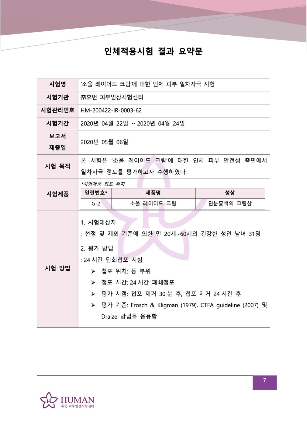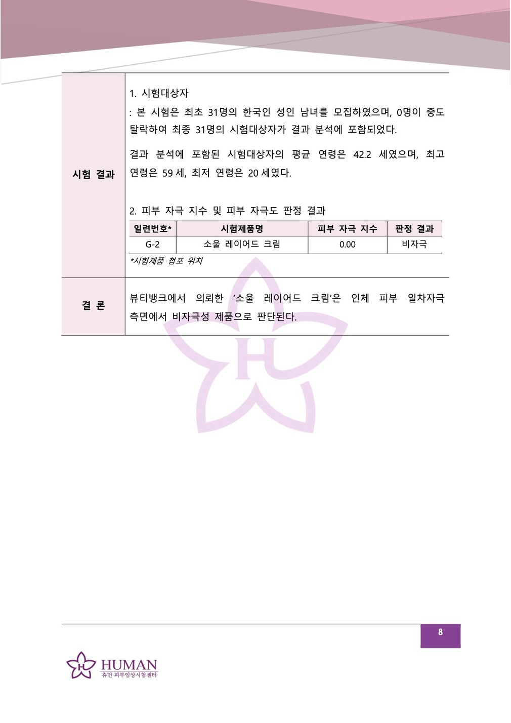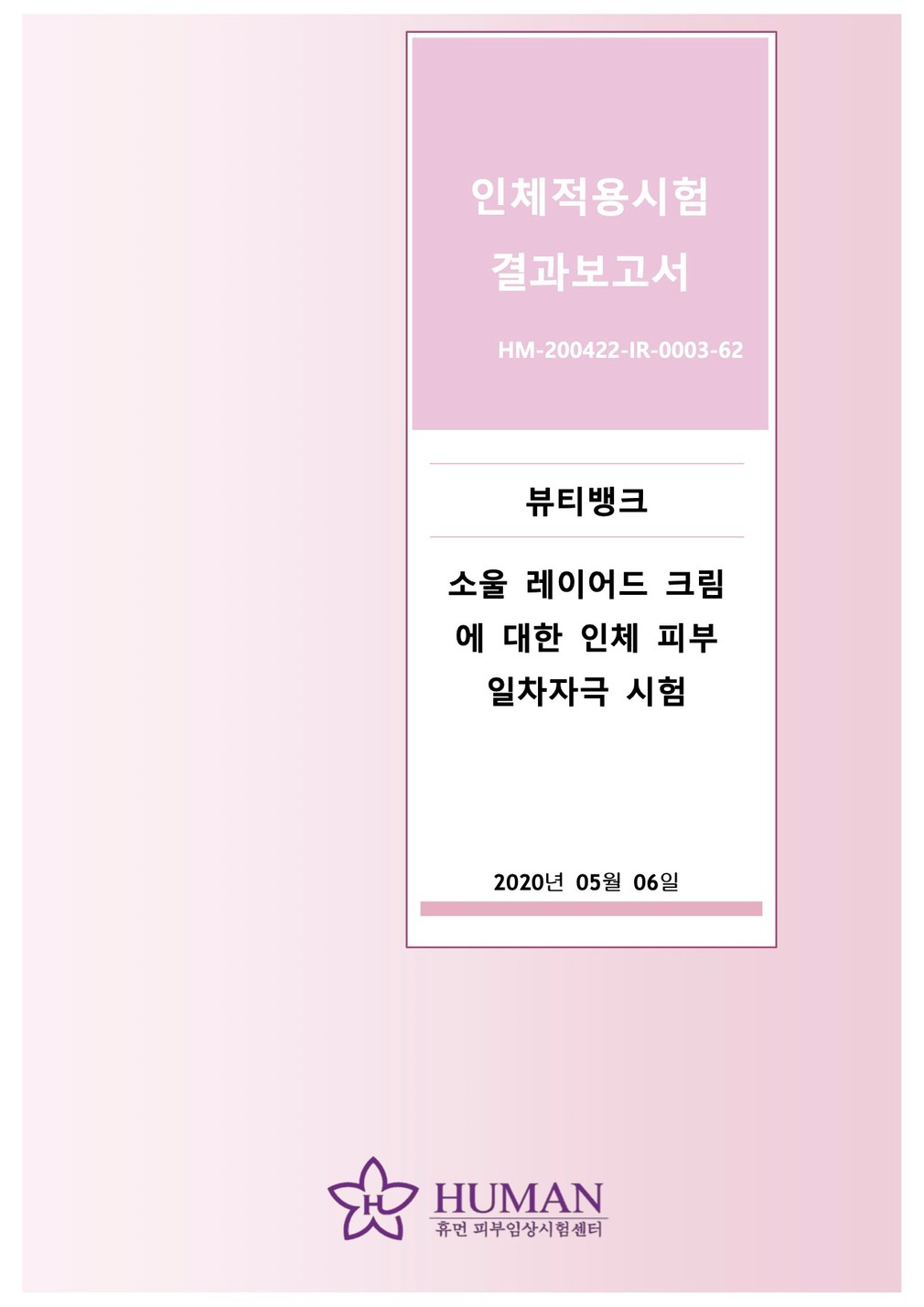 성적서를 확인하세요 ・시험 기관 : 휴먼 피부임상시험센터