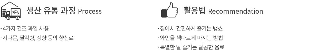 ・구성 : ①건조 과채(시나몬, 팔각향, 정향, 오렌지, 자몽, 사과, 레몬), ②비정제원당
