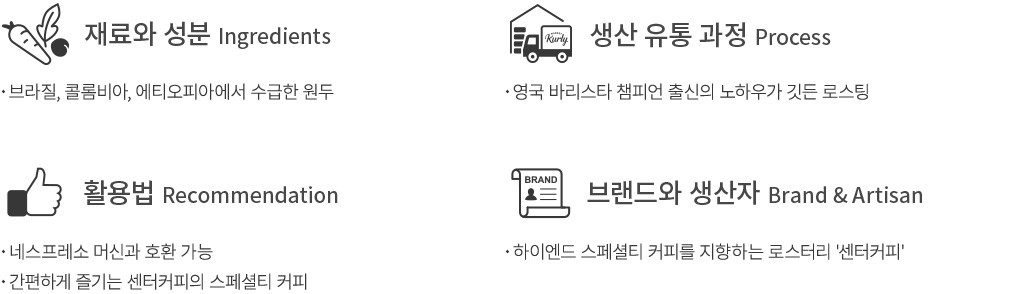 ・원산지 : 브라질 50%, 콜롬비아 30%, 에티오피아 20%