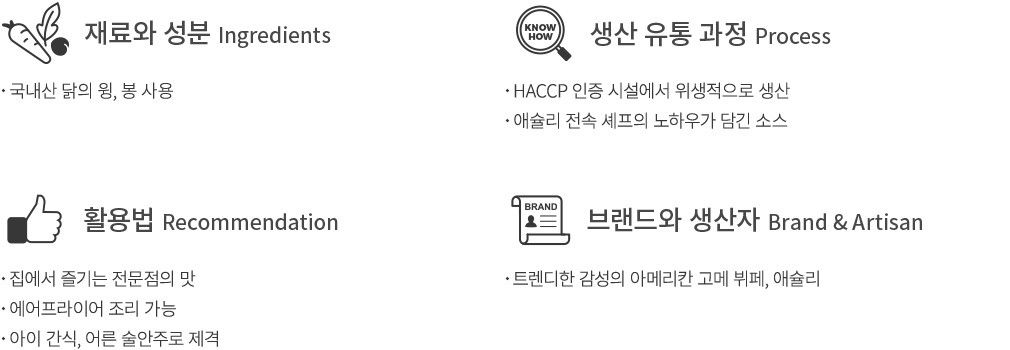 치킨스윗콤보 - 닭고기, 밀, 대두 함유 - 이 제품은 돼지고기, 쇠고기, 알류, 우유, 메밀, 땅콩, 고등어, 게, 새우, 복숭아, 토마토, 아황산류, 호두, 오징어, 조개류(굴, 전복, 홍합 포함), 잣을 사용한 제품과 같은 제조시설에서 제조하고 있습니다. 꿀간장치킨소스 - 대두, 밀, 이산화황 함유 - 이 제품은 닭고기, 돼지고기, 쇠고기, 알류, 우유, 메밀, 땅콩, 고등어, 게, 새우, 복숭아, 토마토, 호두, 오징어, 조개류(굴,전복,홍합 포함), 잣을 사용한 제품과 같은 제조시설에서 제조하고 있습니다.