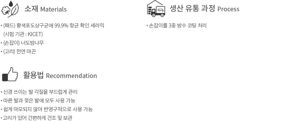 사용법 ・젖은 발 혹은 마른 발에 가볍게 문질러주세요. 사용하면서 패드를 수시로 헹궈주세요.