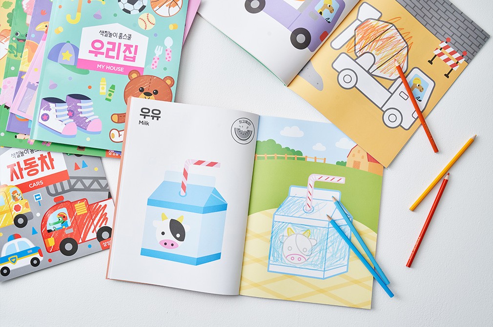 아이들은 색칠 공부를 통해 창의력과 색채 감각을 쌓아 나가죠. 과일 채소부터 우리집까지 10가지의 친숙한 주제로 구성된 색칠놀이 홈스쿨 세트를 소개할게요. 밑그림 옆으로 완성된 예시 그림이 나란히 나와 있어 아이 스스로 색칠할 때 도움을 주는 것은 물론이고요. 알록달록한 일러스트와 함께 한글, 영어 어휘, 칭찬 스티커 등이 들어가 더욱 다채롭게 즐길 수 있어요. 그림 그리기 좋아하는 우리 아이를 위해 놀이책으로 준비해보세요.