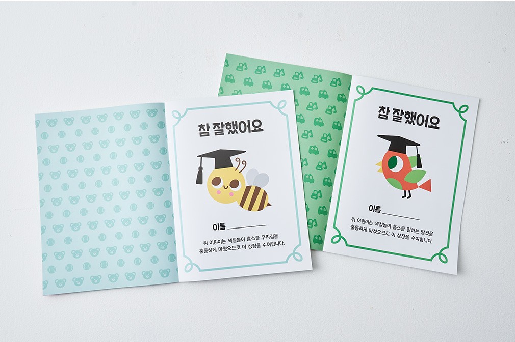 상장 활용법 ・각 책의 뒷면에 상장이 포함되어 있습니다.
