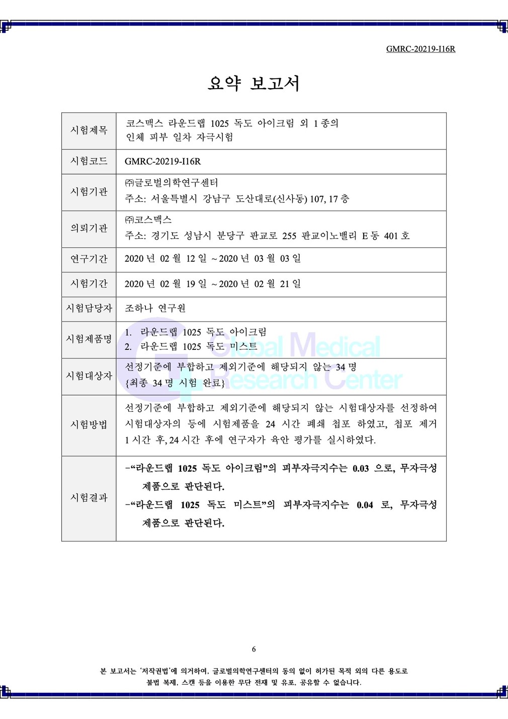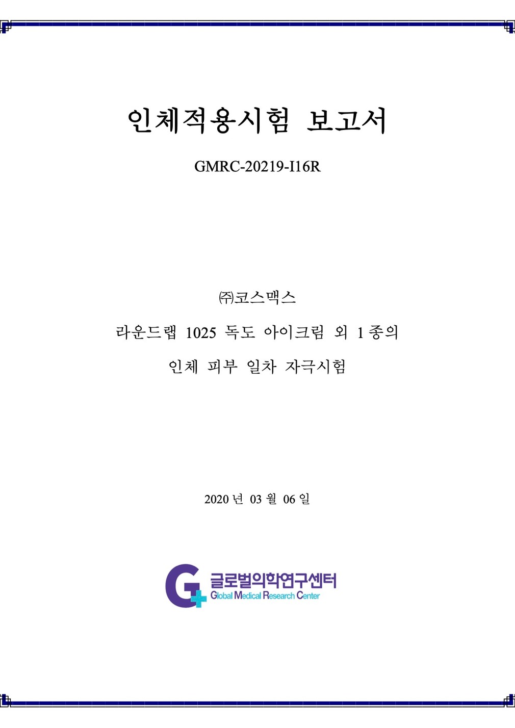성적서를 확인하세요 ・시험 기관 : (주)글로벌의학연구센터