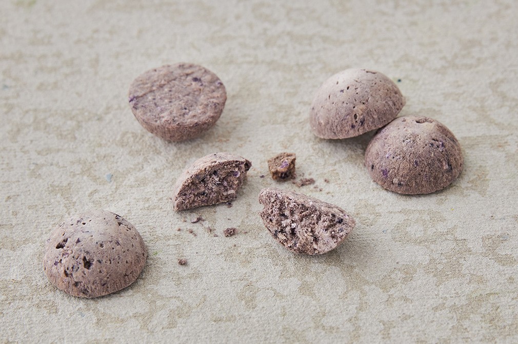오리고기와 함께 퍼플푸드의 영양을 그대로 품은 동결건조 간식을 소개할게요. 단백질뿐만 아니라 신선한 채소와 과일이 지닌 유익한 영양소를 균형 있게 배합해낸 제품이에요. 대부분의 동결건조 트릿이 육류로만 만들어진 고단백 제품임을 고려하면 무척 반갑죠. 퍼플푸드 본연의 선연한 빛깔과 마카롱 같은 동글동글한 모양이 사랑스럽기도 합니다. 첨가물 없이 오로지 원물만을 담아냈어요. 간결한 원재료를 눈으로 직접 확인한 후, 반려동물의 취향에 맞게 선택해보세요.