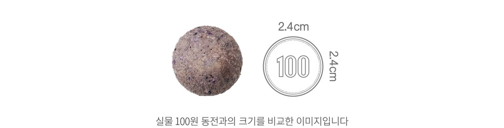 ・재료를 곱게 갈아 동결건조한 제품으로, 1mm 정도의 작은 양배추, 블루베리 조각들이 눈에 보입니다.