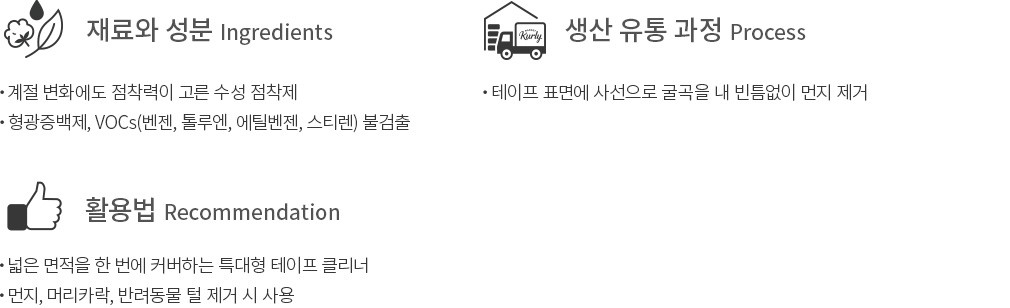 ・특징 : 폭이 넓은 특대형 테이프 클리너 세트입니다. 별도의 핸들이나 거치대를 가지고 있지 않은 첫 구매자에게 추천합니다.