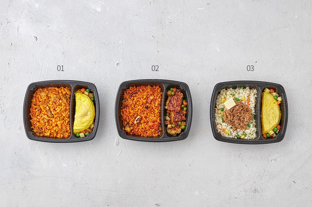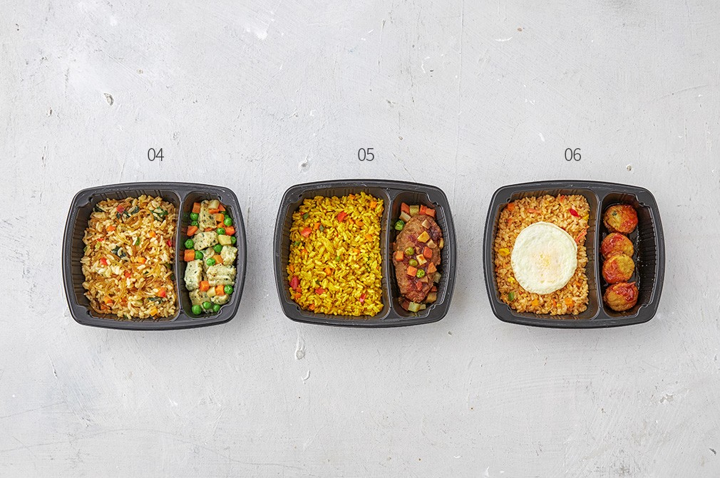 차돌김치볶음밥&참치오믈렛 - 쇠고기, 밀, 대두, 우유, 조개류(굴), 알류 함유 낙지볶음밥&갈릭스테이크 - 닭고기, 돼지고기, 쇠고기, 대두, 밀, 알류, 오징어, 새우, 토마토, 우유, 조개류(굴, 홍합, 바지락) 함유 버터장조림볶음밥&불고기오믈렛 - 밀, 대두, 돼지고기, 쇠고기, 알류, 우유 함유 잡채볶음밥&깻잎맛닭가슴살 - 소고기, 토마토, 대두, 밀, 우유, 닭고기, 돼지고기 함유 치킨카레볶음밥&두부스테이크 - 닭고기, 알류, 우유, 대두, 밀, 토마토, 쇠고기, 돼지고기, 아황산류 함유 랍스터볶음밥&닭가슴살동글전 - 토마토, 게, 알류, 밀, 대두, 우유, 새우, 닭고기, 쇠고기, 조개류(굴) 함유 - 이 제품은 닭고기, 메밀, 땅콩, 고등어 ,게, 새우, 오징어, 조개류(홍합,전복,굴 포함), 복숭아, 토마토, 호두, 잣, 아황산류를 사용한 제품과 같은 제조시설에서 제조하고 있습니다.