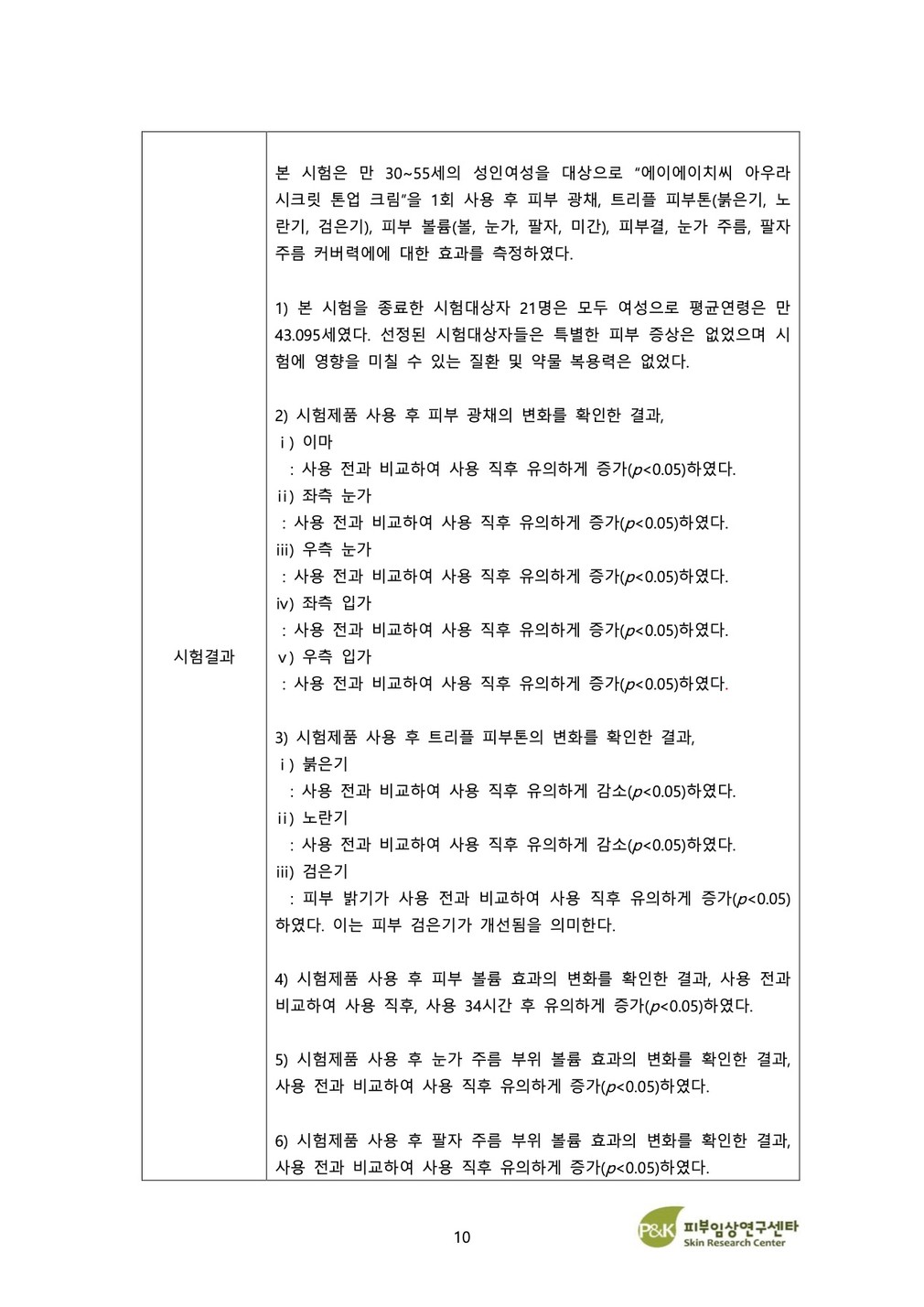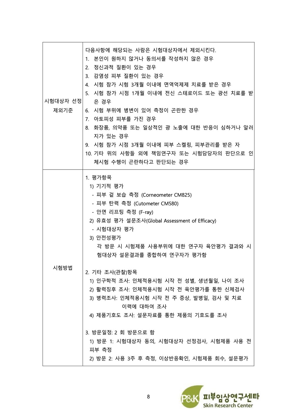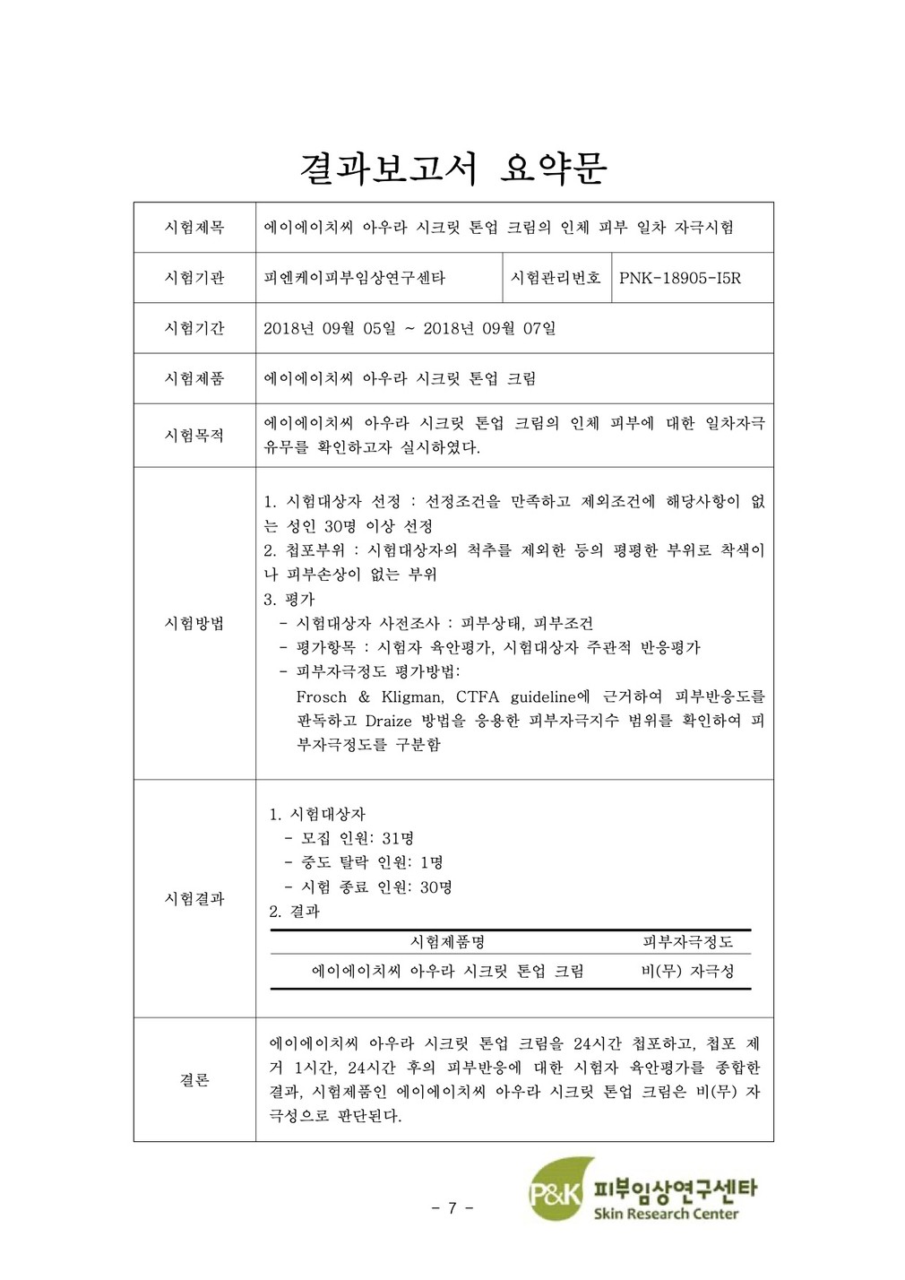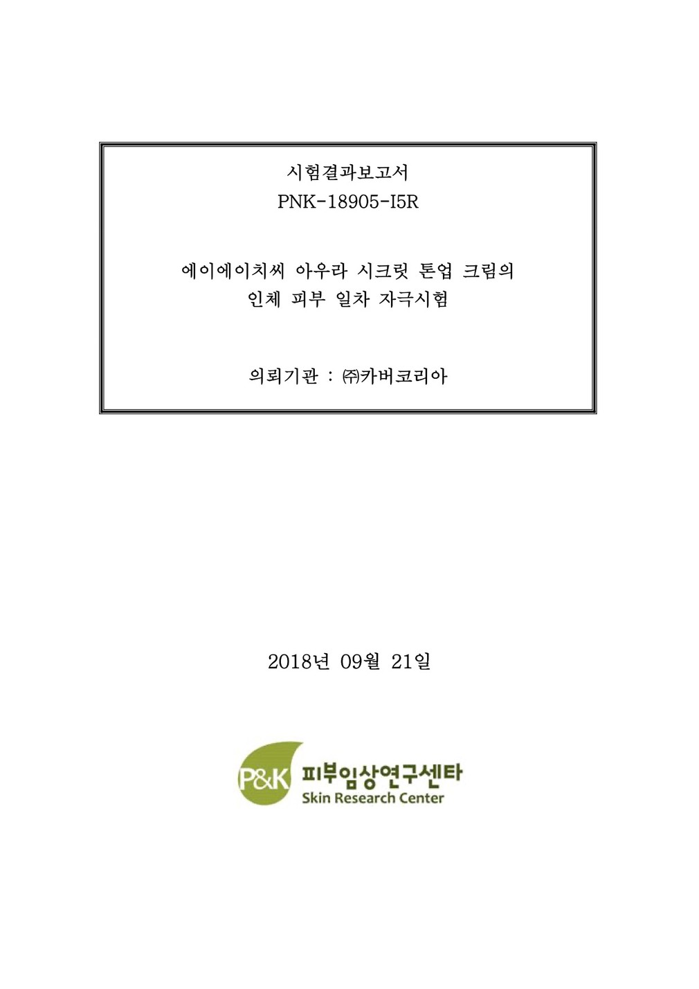 성적서를 확인하세요 ・시험 기관 : P&K 피부임상연구센타