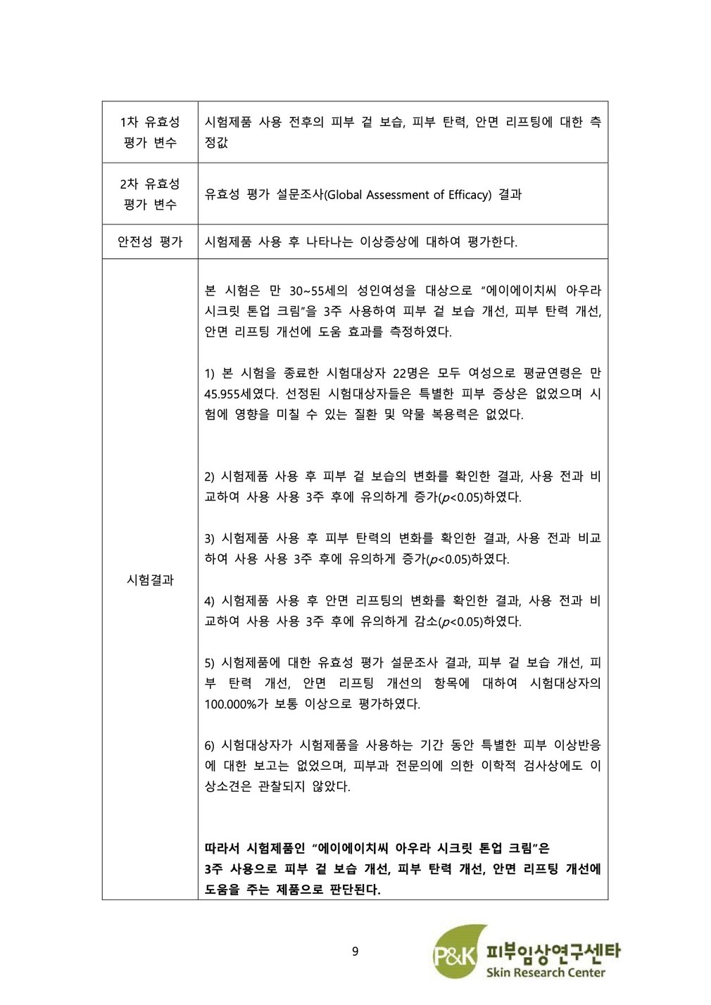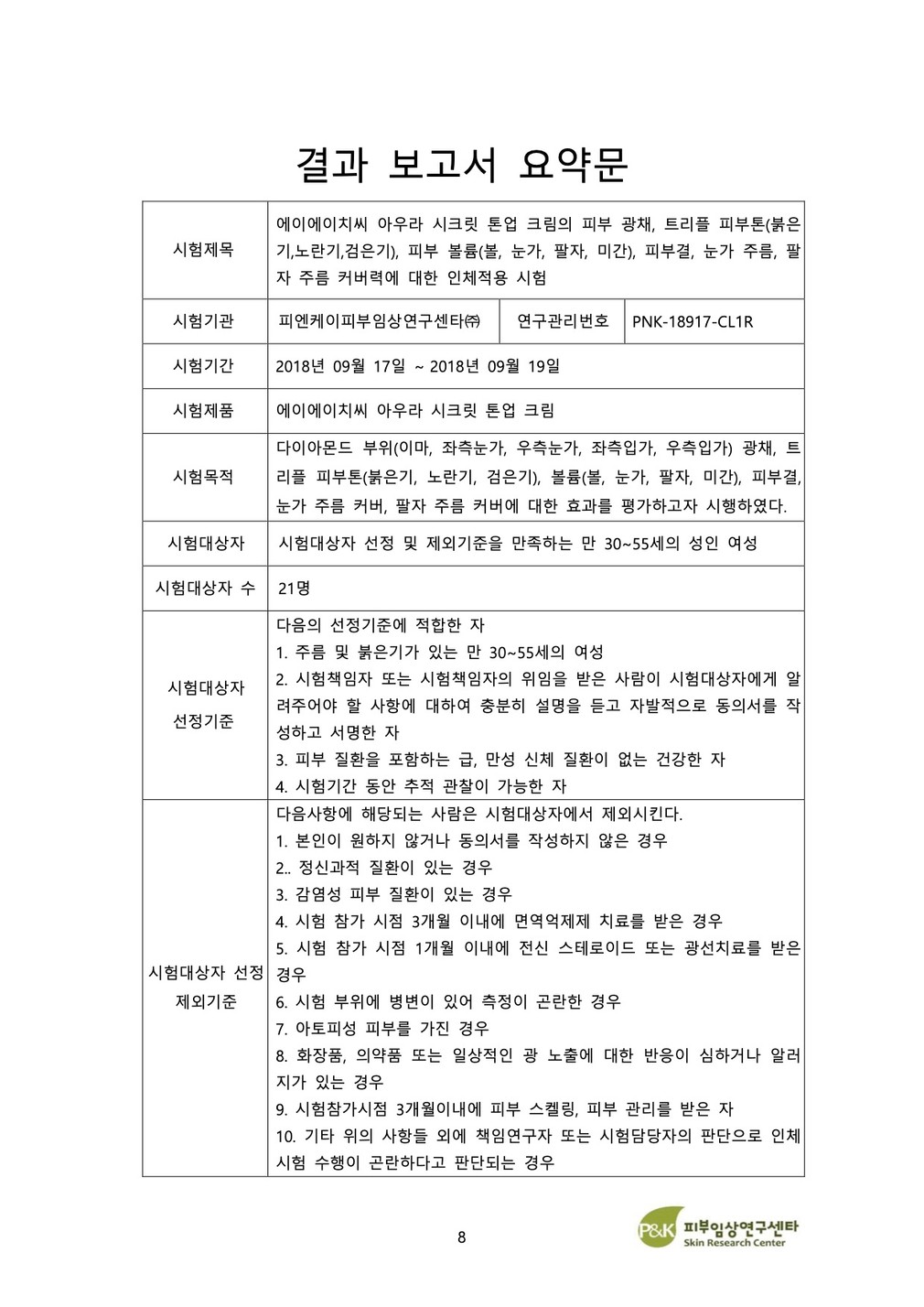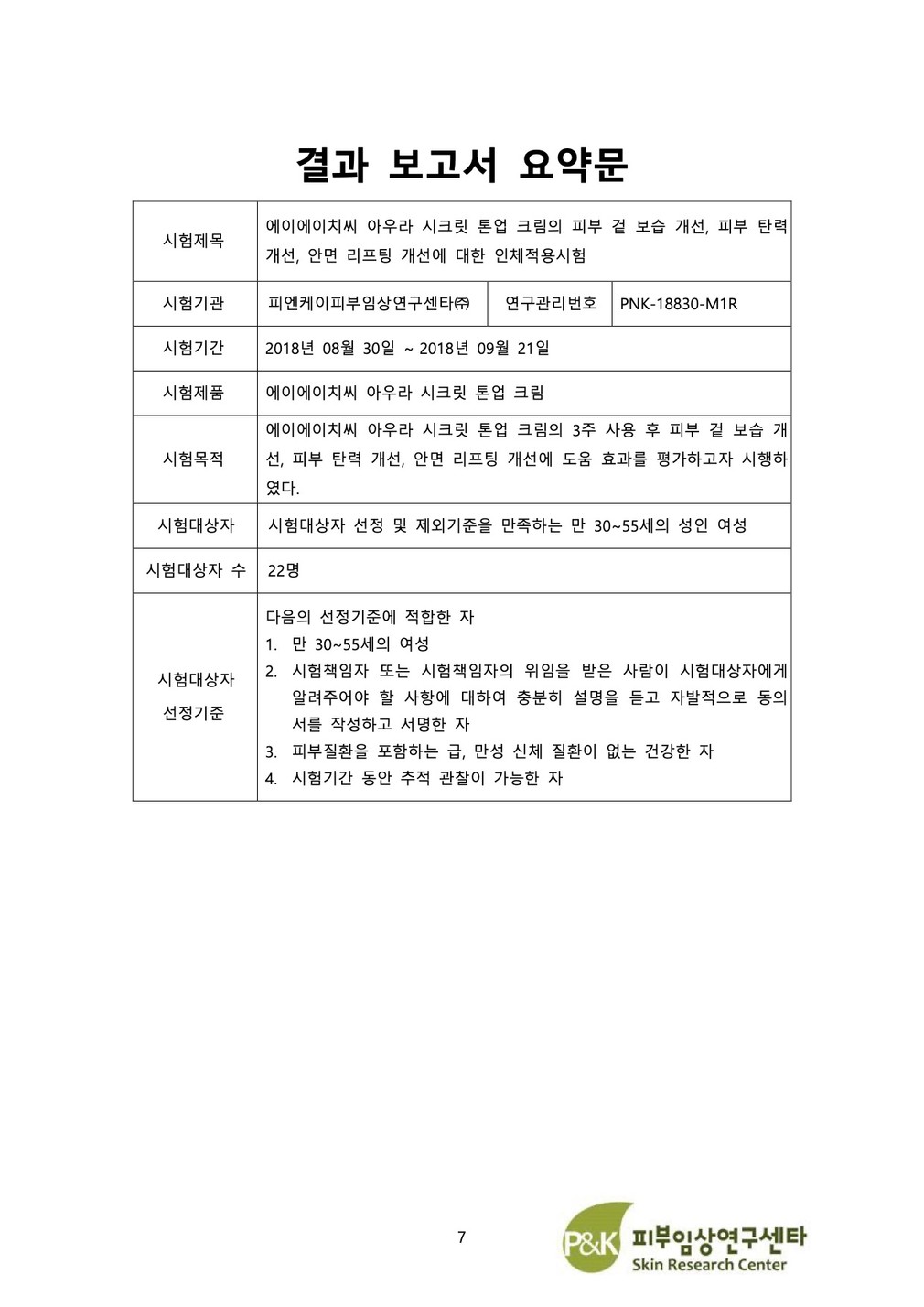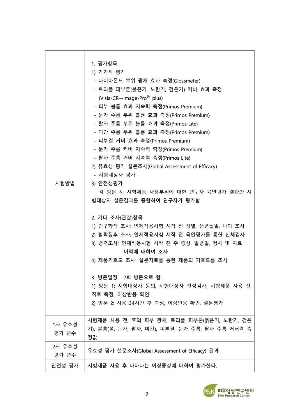성적서를 확인하세요 ・시험 기관 : P&K 피부임상연구센타