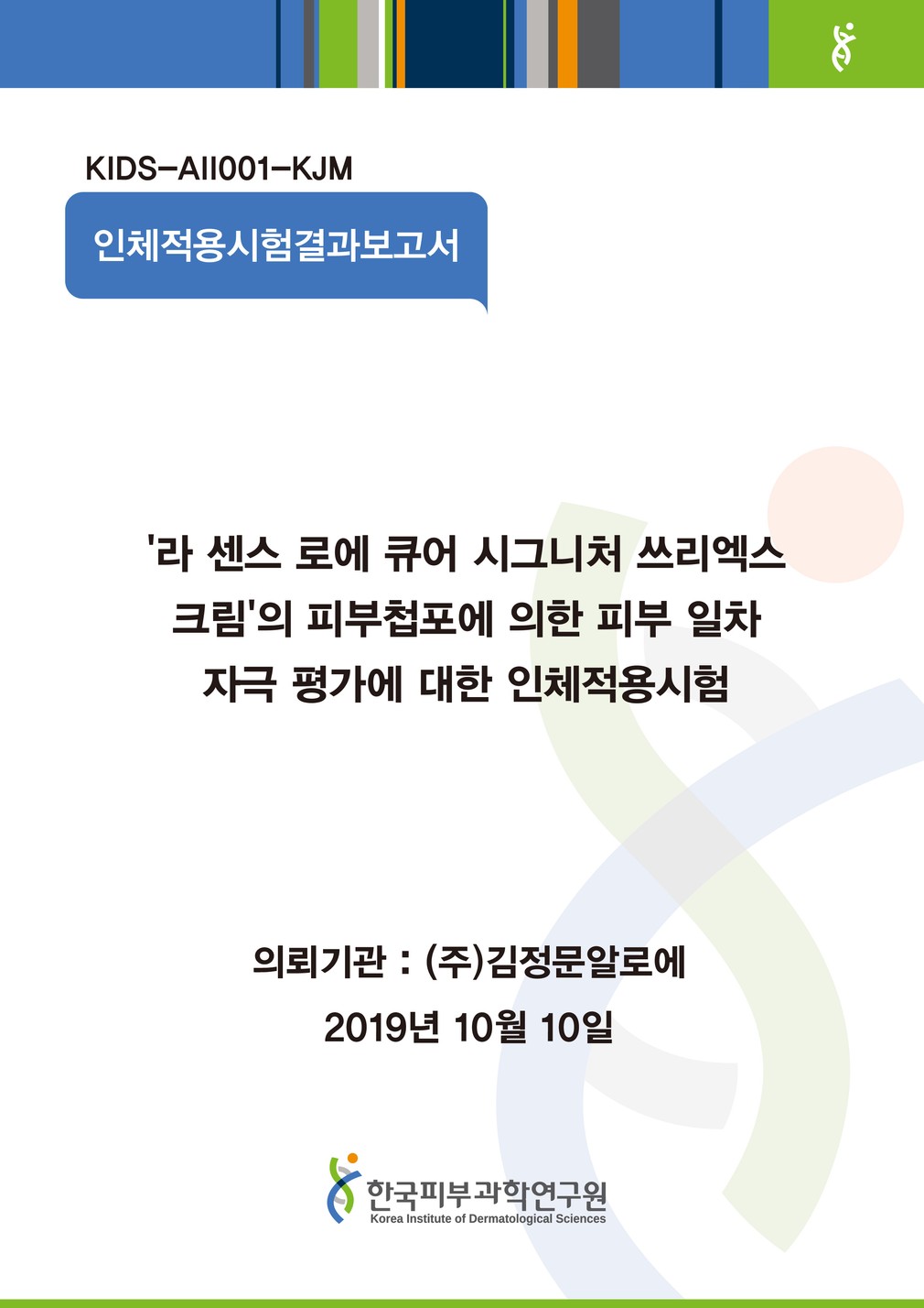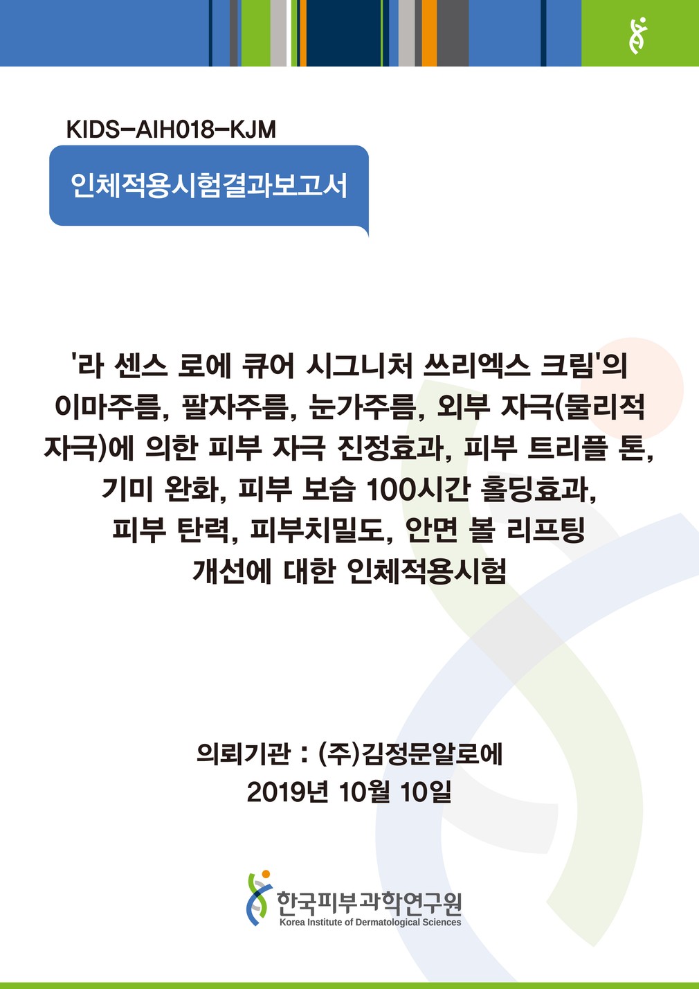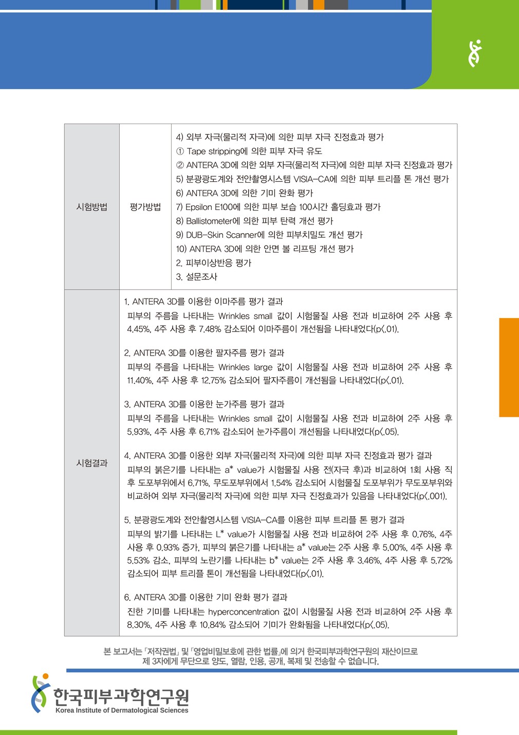 성적서를 확인하세요 ・ 시험 기관 : 한국피부과학연구원