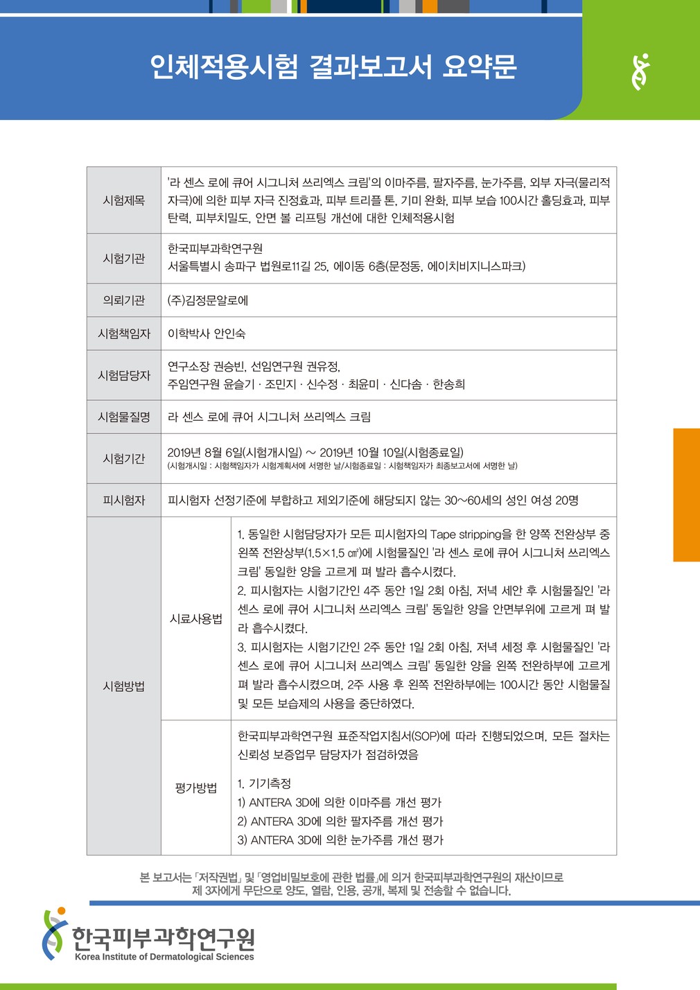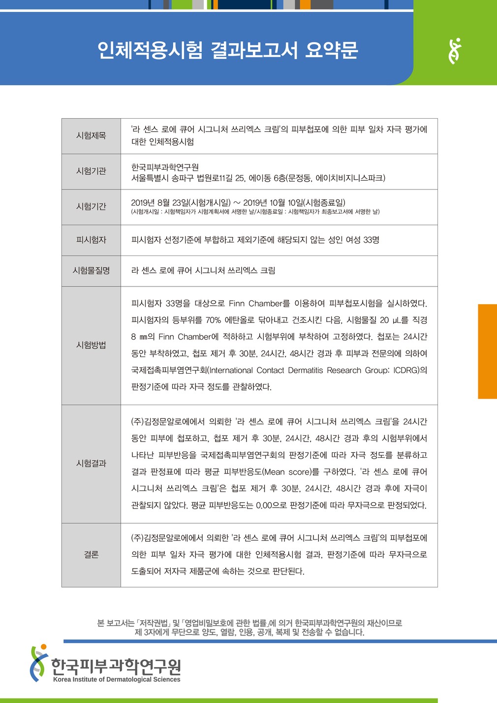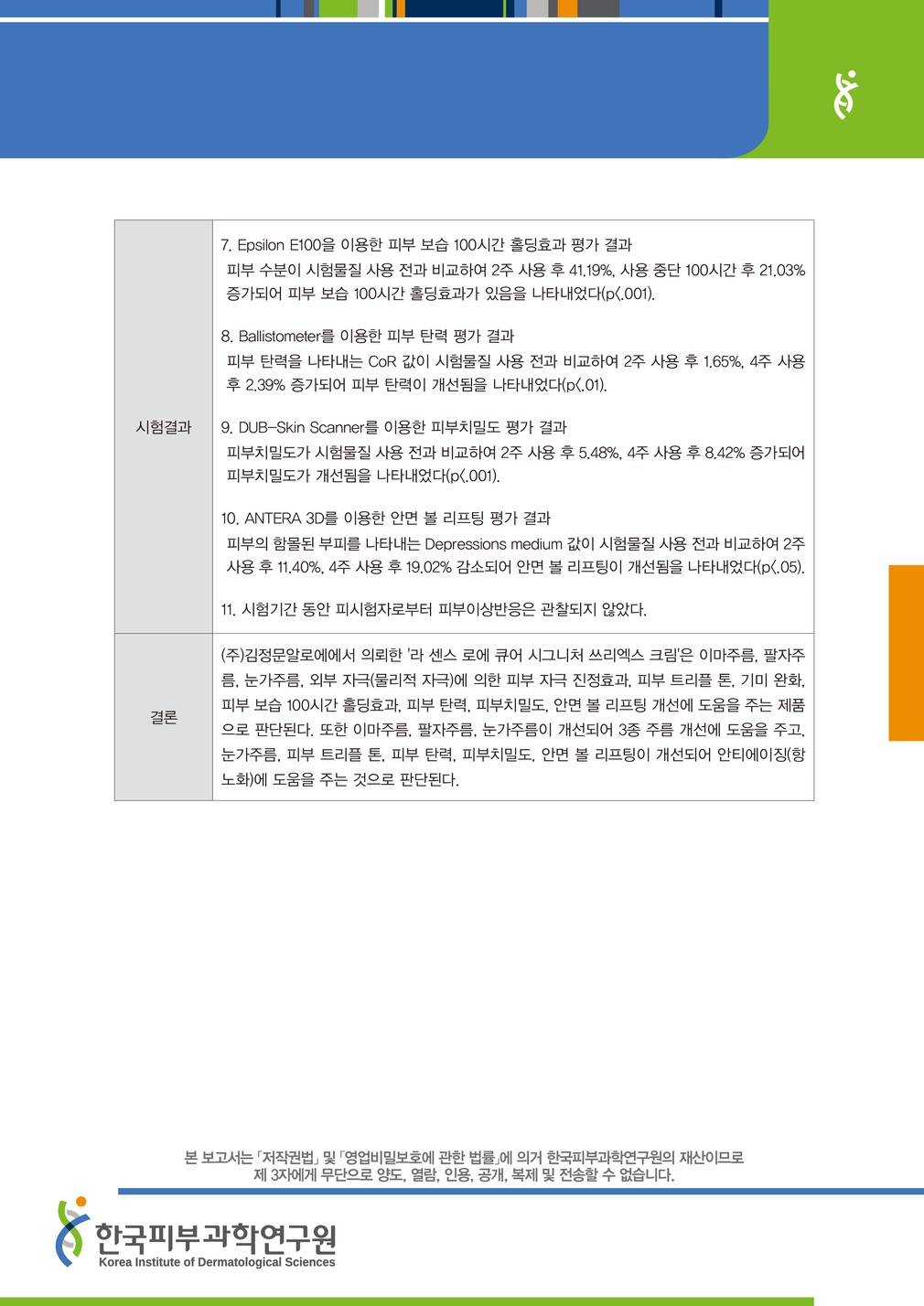 성적서를 확인하세요 ・ 시험 기관 : 한국피부과학연구원