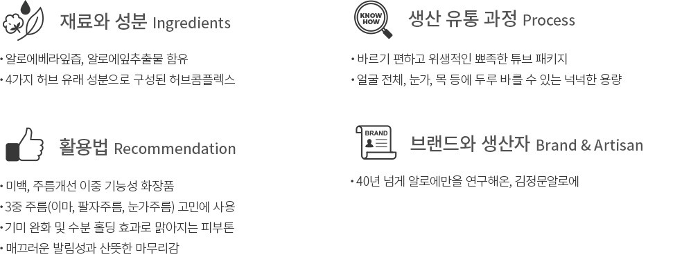 김정문알로에는 아직 국내에서 알로에라는 식물이 생소하게 여겨지던 1970년대, 알로에 전문 회사인 ‘알로에의 집’에서 부터 시작한 브랜드입니다. 1980년대부터는 우리 땅에서 직접 알로에를 기르기 시작했지요. 제주도에서 천 일에 이르는 재배 기간 동안 정성껏 기른 알로에로 개발한 ‘라센스 로에’는 30년이 흐른 지금도 만나볼 수 있는 대표 제품입니다. 90년대부터 알려지기 시작한 김정문알로에는 화장품에 그치지 않고 알로에로 만든 건강기능식품을 개발하는 등 변함없이 알로에 하나만을 향한 연구의 길을 걷고 있습니다.