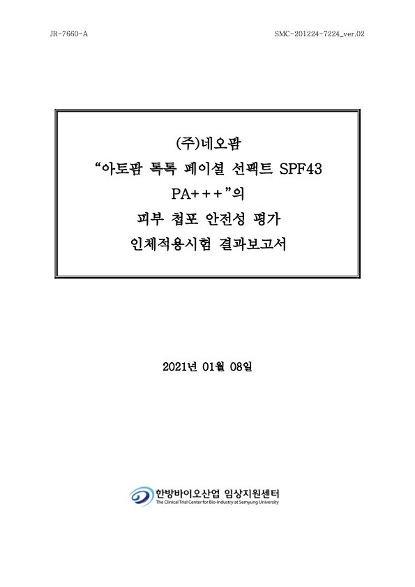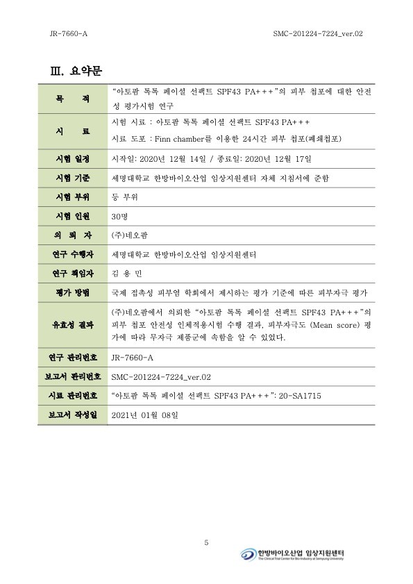 성적서를 확인하세요 ・시험 기관 : 세명대학교 한방바이오산업 임상지원센터