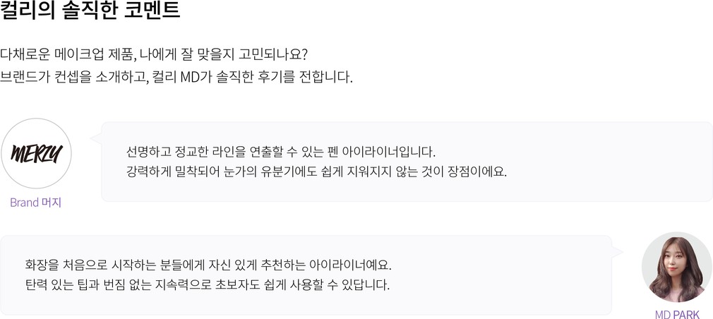 ・ 특징 : 부드러우면서도 또렷한 눈매를 연출해주는 다크 브라운 색상이에요.
