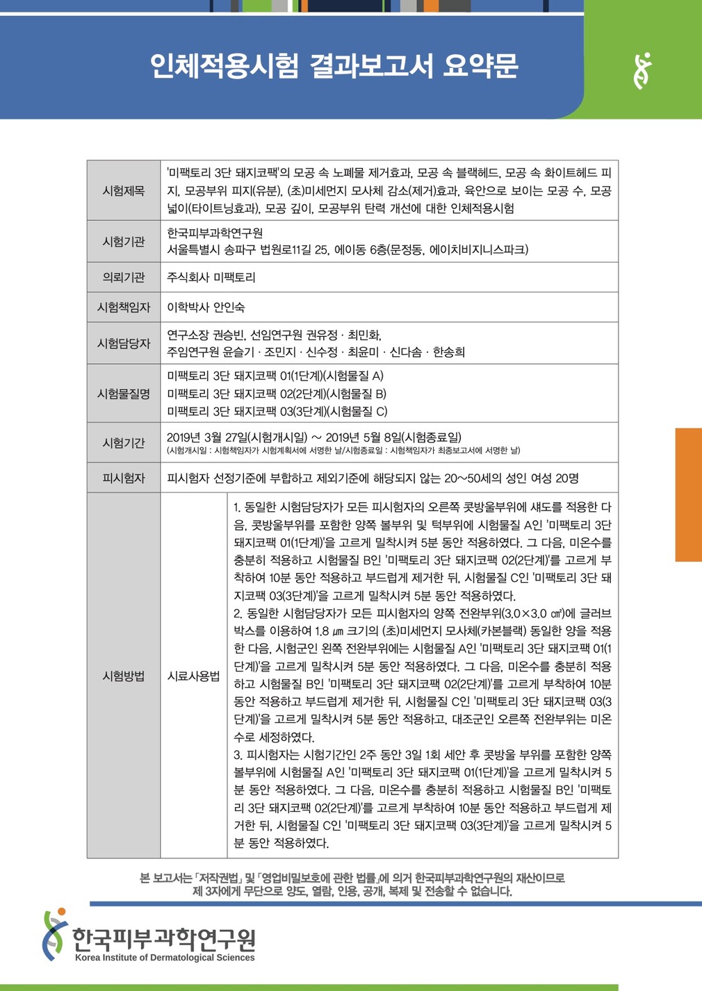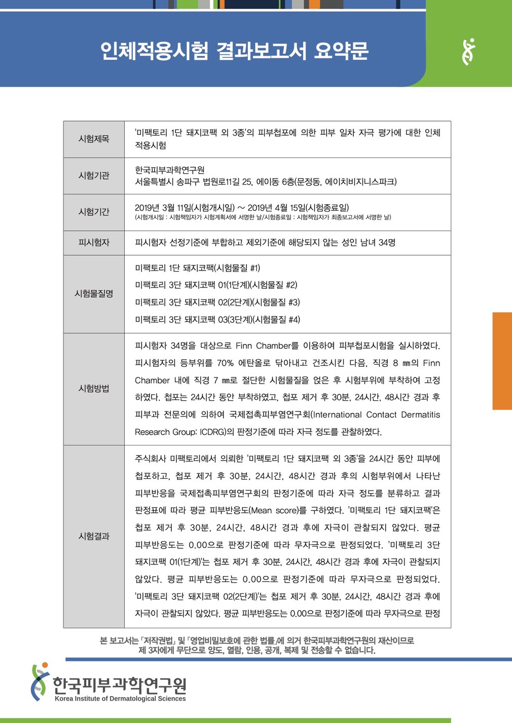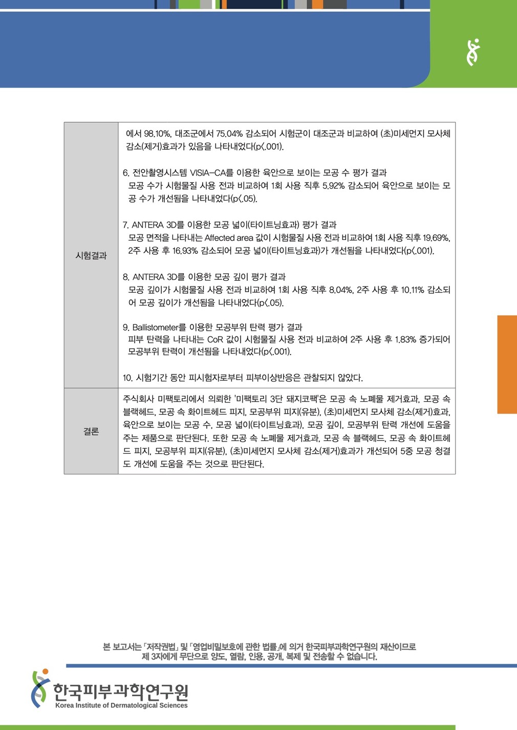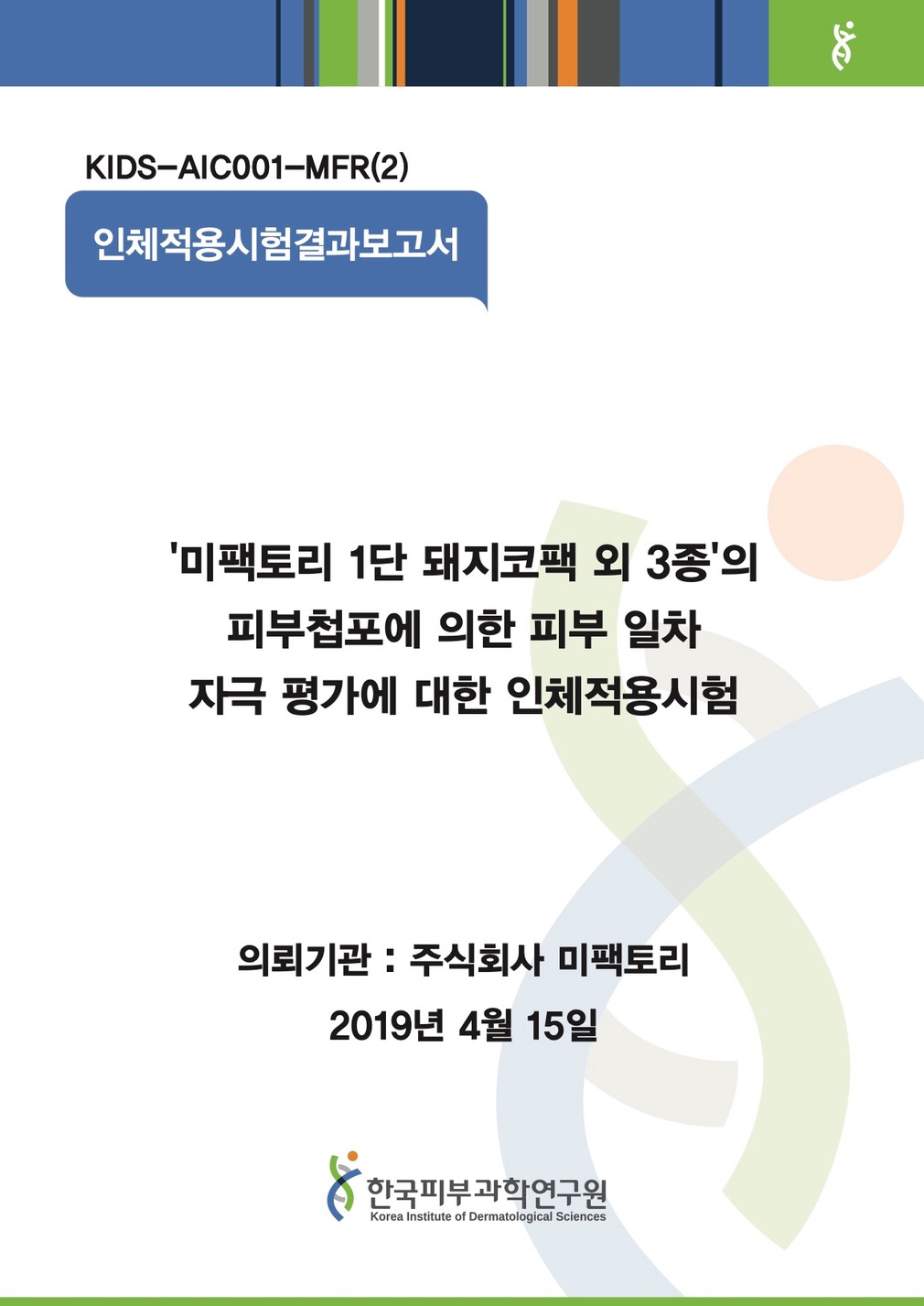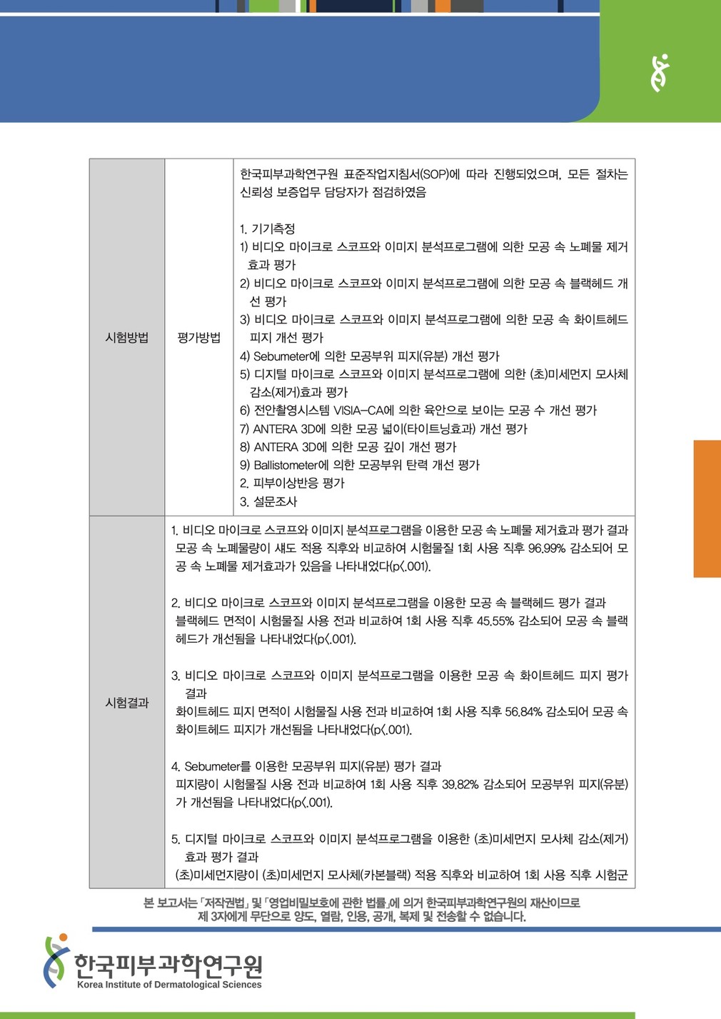 성적서를 확인하세요 ・시험 기관 : 한국피부과학연구원
