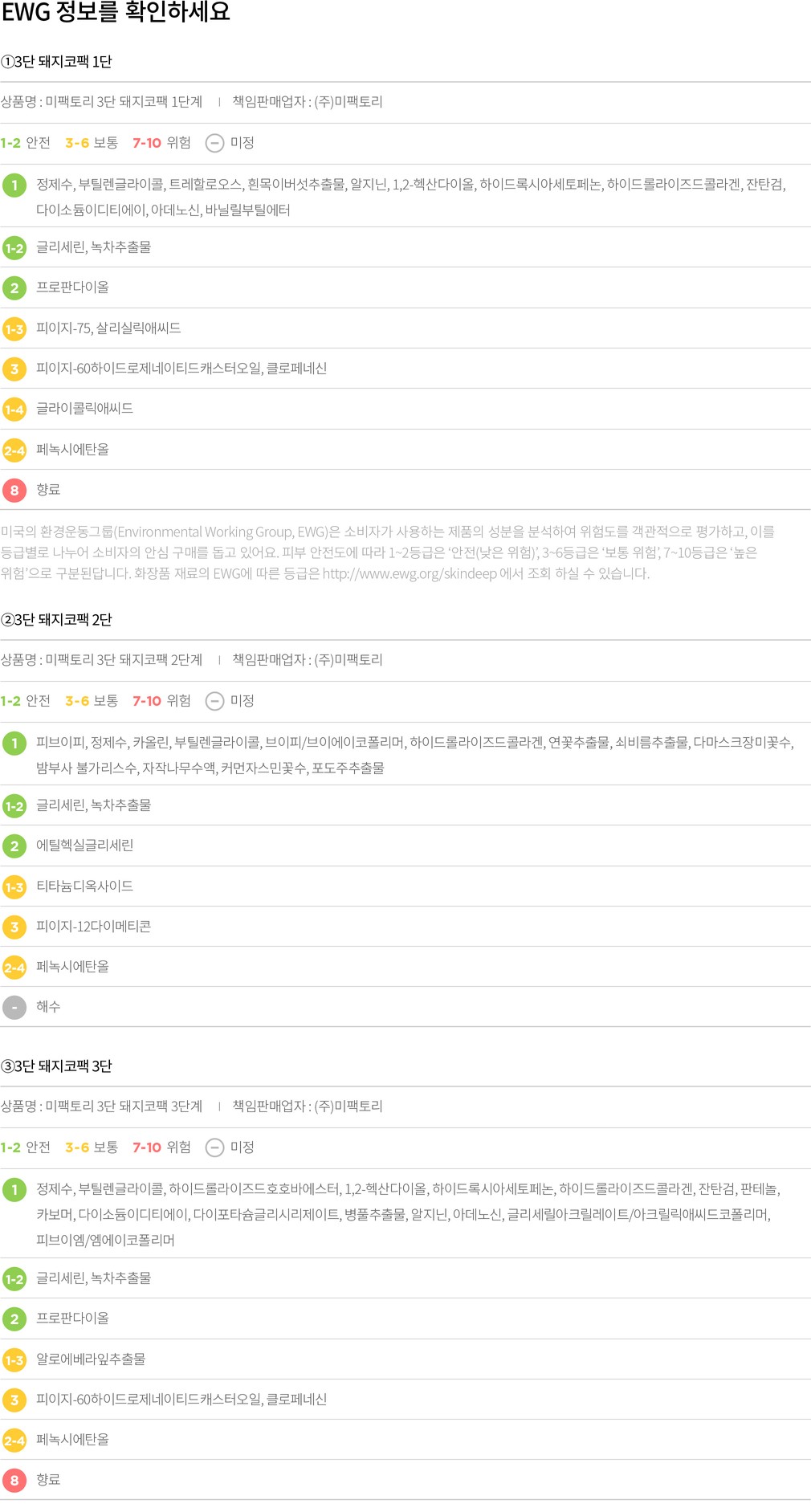 컬리는 EWG로부터 보통, 위험 등급을 받은 성분이라 하더라도 숨기지 않고 정직하게 공개합니다. 더불어 우려되는 성분에 대한 정보를 함께 제공해 드리오니 구입 전 반드시 확인해 주세요.