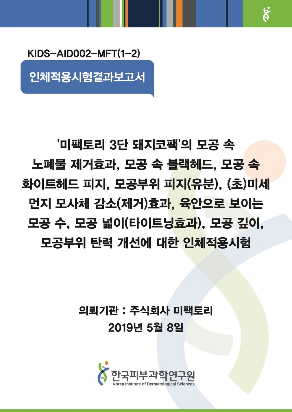 ②모공 속 노폐물, 블랙헤드, 화이트헤드 피지 제거 효과 및 육안으로 보이는 모공 수, 넓이, 탄력 개선에 도움을 주는 제품으로 판단