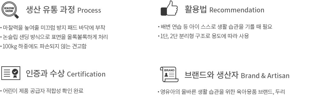 추천팁 ・ 두리의 유아 변기 커버와 함께 사용해보세요. 아이의 배변 습관을 한층 더 편하고 올바르게 길러줄 수 있을 거예요.